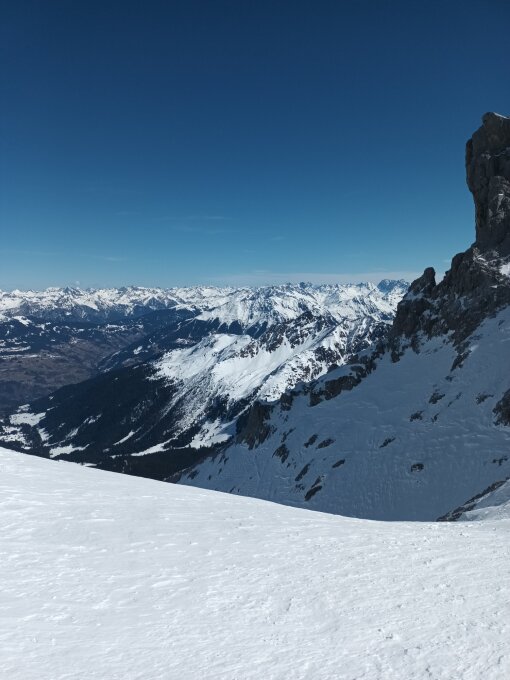 Daher Harscheisen sehr angenehm u. empfehlenswert (besonders in der oberen Querungen u. Steilstufen). Obere Steilstufen mit Spitzkehren daher etwas mühsam zu gehen.