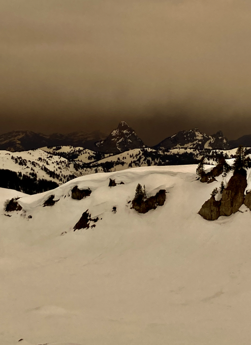 Schöne Stimmung mit dem Sahara Staub. Leider fing es dann gegen 10:00 an zu regnen.