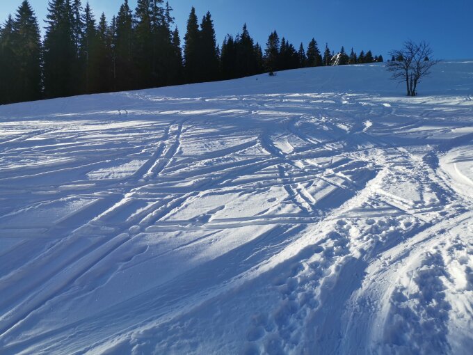Noch gerade vor den ersten aperen Stellen auf der Strasse. Oben am Gestelengrat und am Buur sogar noch etwas Pulver / Presspulver gefunden.