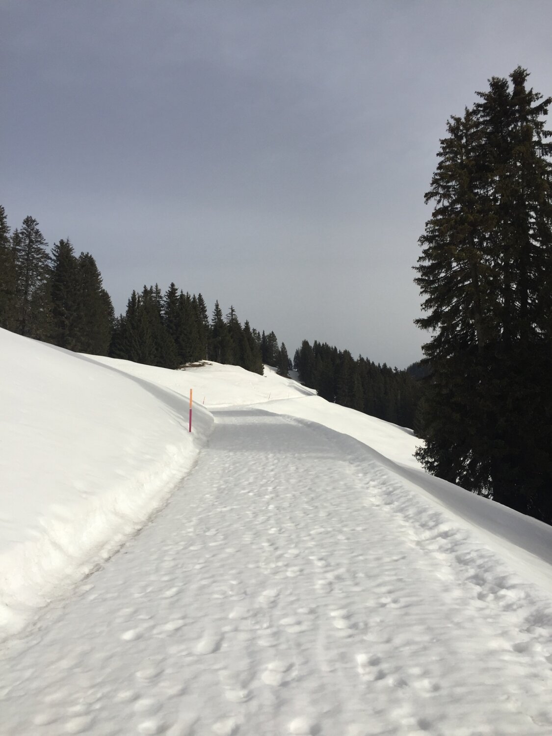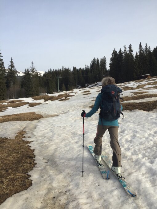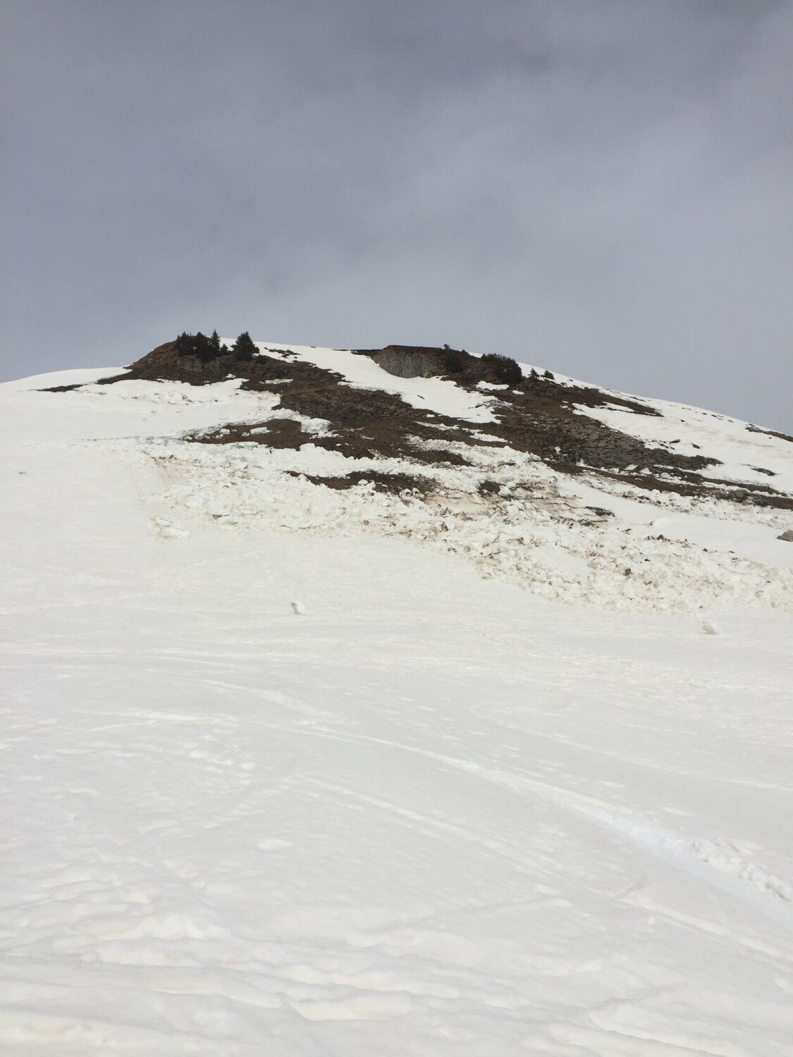 Von der Talstation des Skilifts Howald noch sehr knapp durchgehend mit den Skier begehbar. Ab Bergstation bis zum Gipfel noch gut eingeschneit. Die Schlüsselstelle kurz vor dem Gipfel ist noch knapp mit den Skier begehbar.