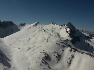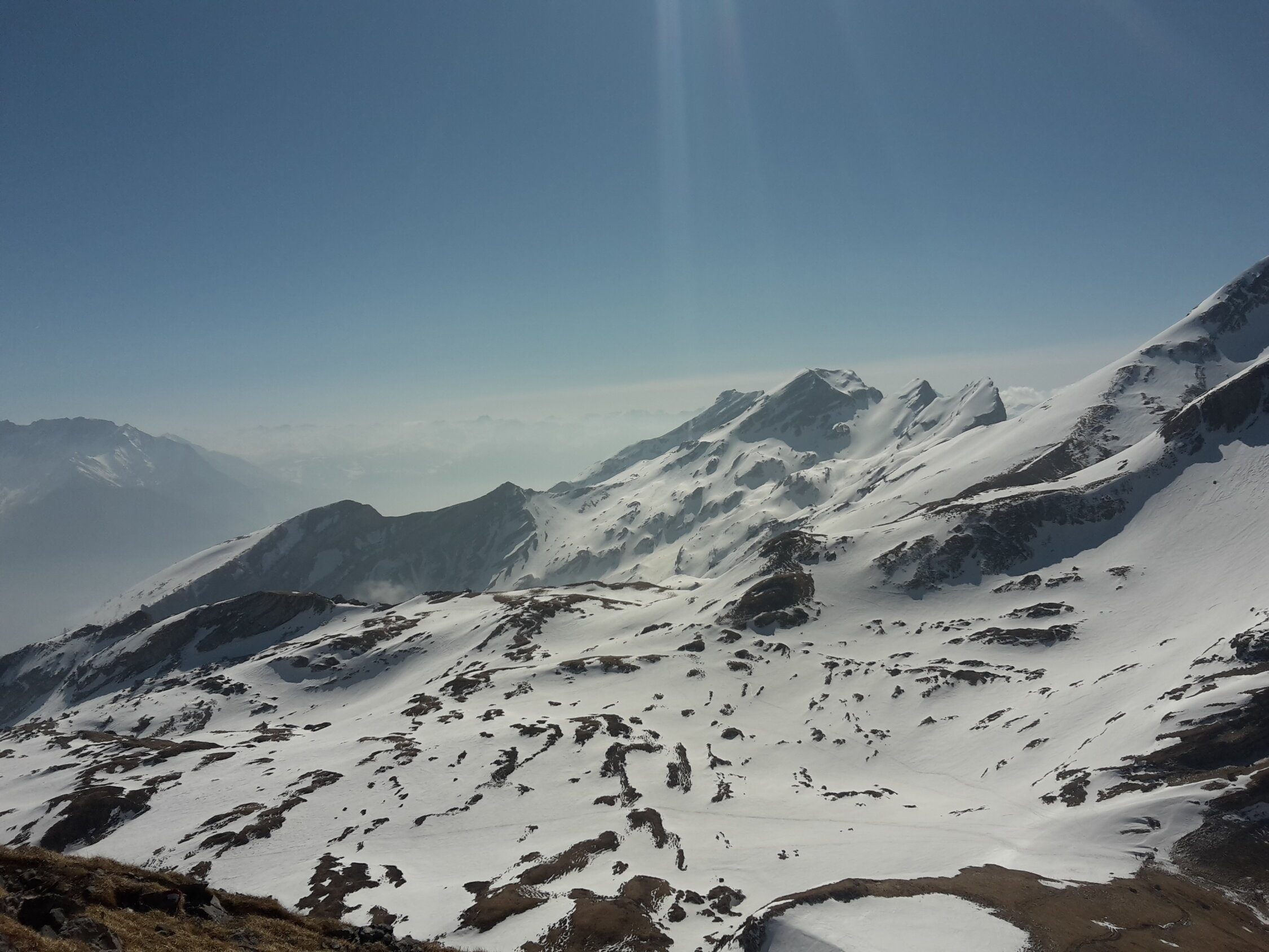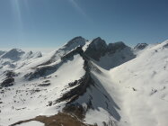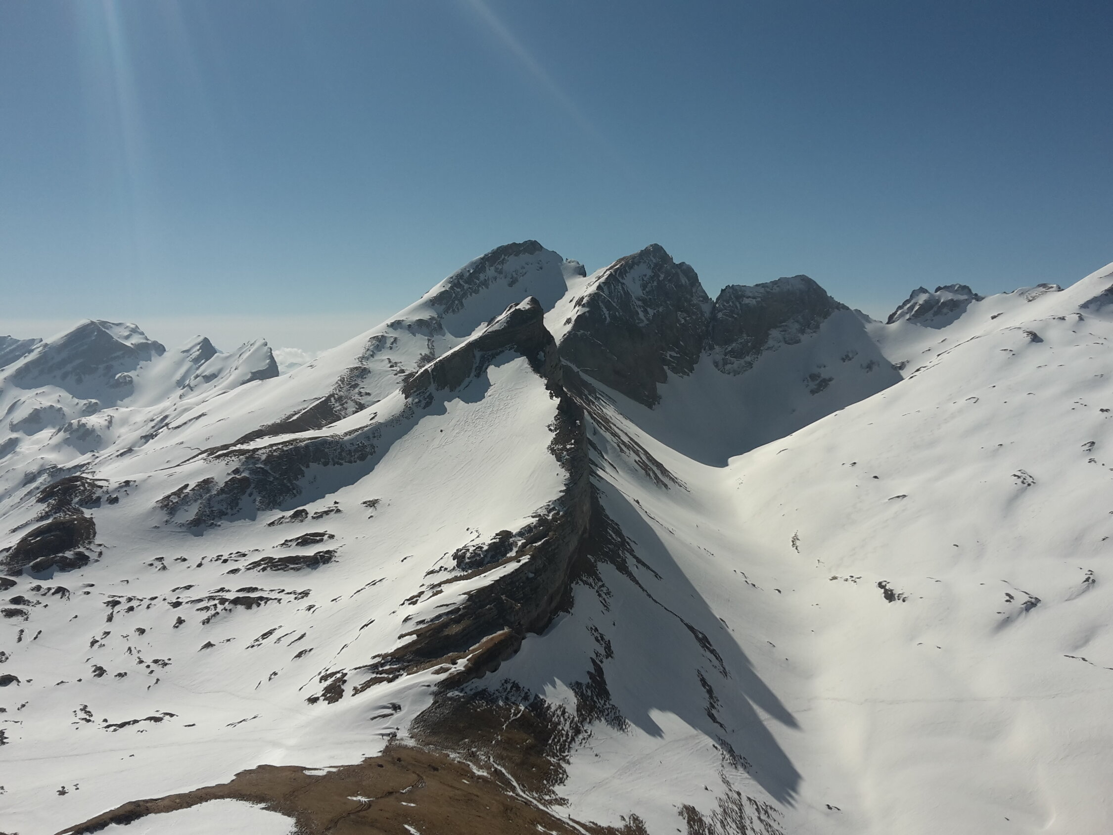 Start um 8:30 beim Berghaus, schon recht warm. Es hat immer noch genug Schnee auf der Skiliftpiste und sogar im Hochwald. In der Traverse unter dem Hanenspil müssen die Ski ca 100m getragen werden (recht schlammig!). Nachher angenehm bis zum Isisitzgrat, welcher aper ist bis zum Gipfel (Seile natürlich frei).