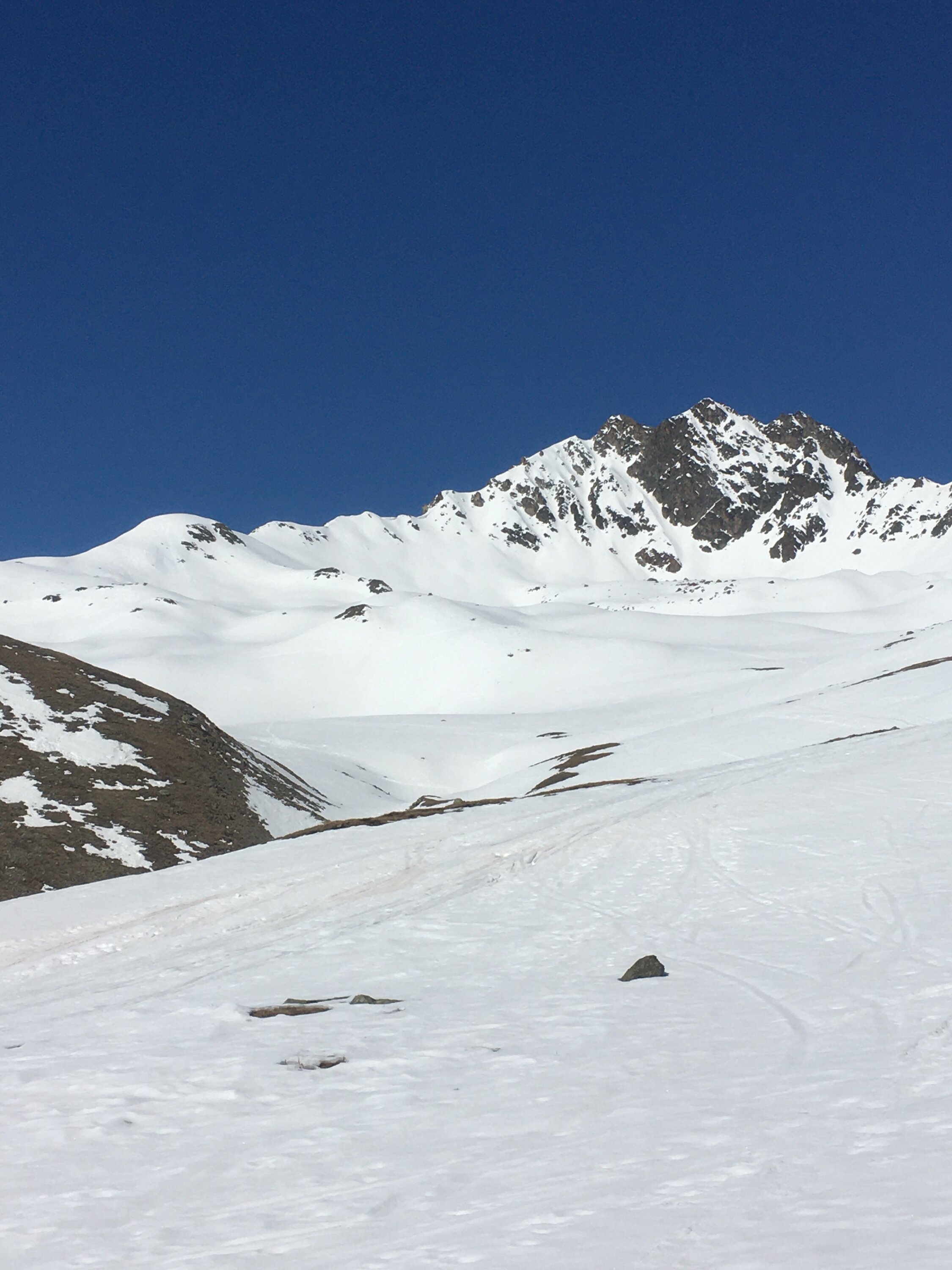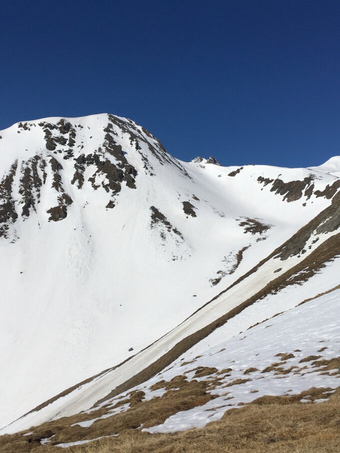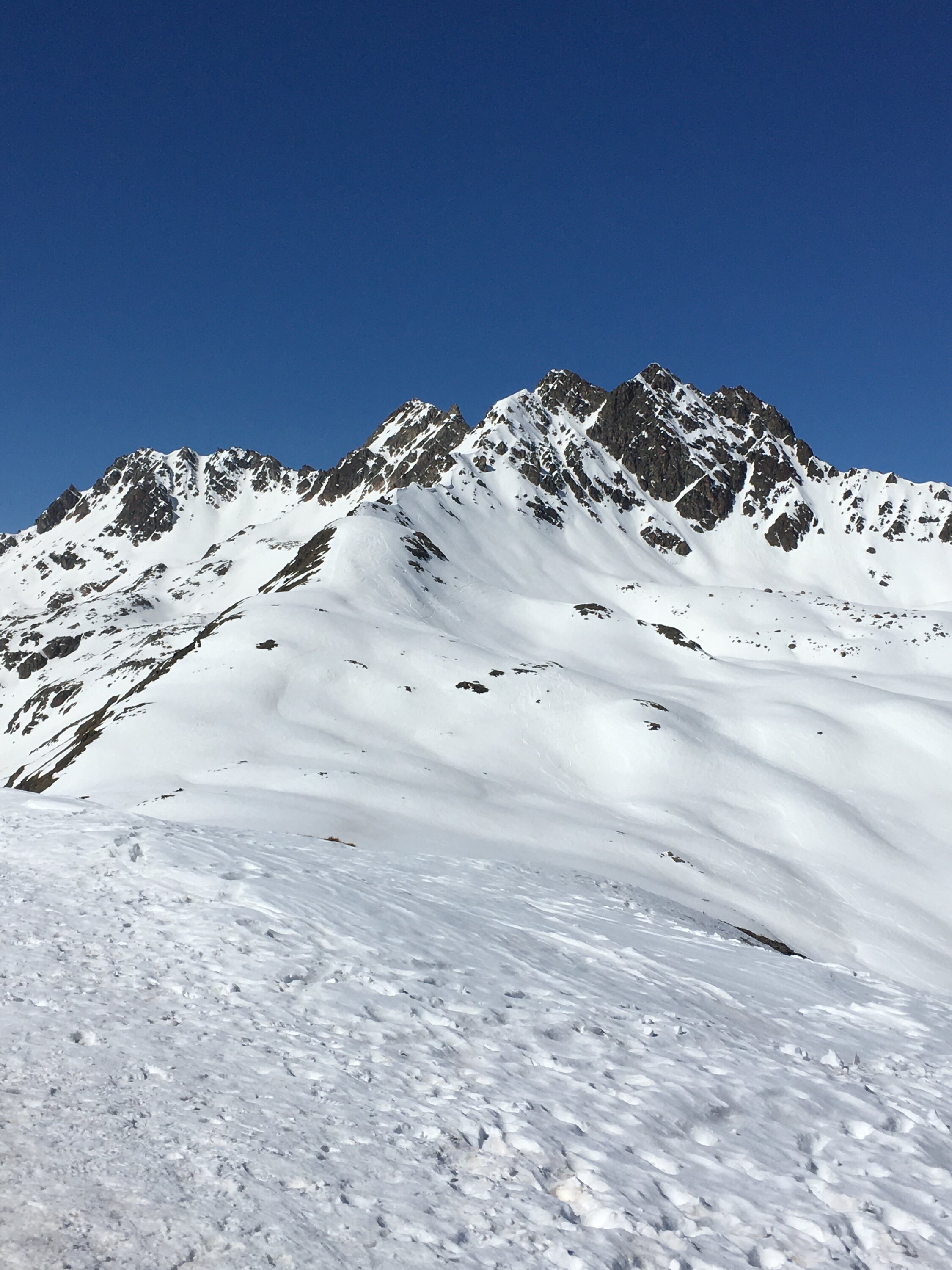 Start 10 Uhr Bergstation Pizzerlift, 0 Grad, windstill. Erste Bahn 9.15 Uhr, Tourenbillet CHF 26.00. Hartschnee bis Gipfel, die steile Traverse in die Viroulamulde hat ein kurzes Stück kein Schnee und die Ski müssen getragen werden. Aufstieg Nordgrat zum Gipfel 30 Höhenmeter zu Fuss. Bin wieder der Aufstiegsroute abgefahren, Piste eher hart, habe den Verhältnissen Abfahrt über Südrücken nicht getraut, wahrscheinlich weich im unteren Teil. Der Sessellift fährt noch bis Sonntag, 20. März.