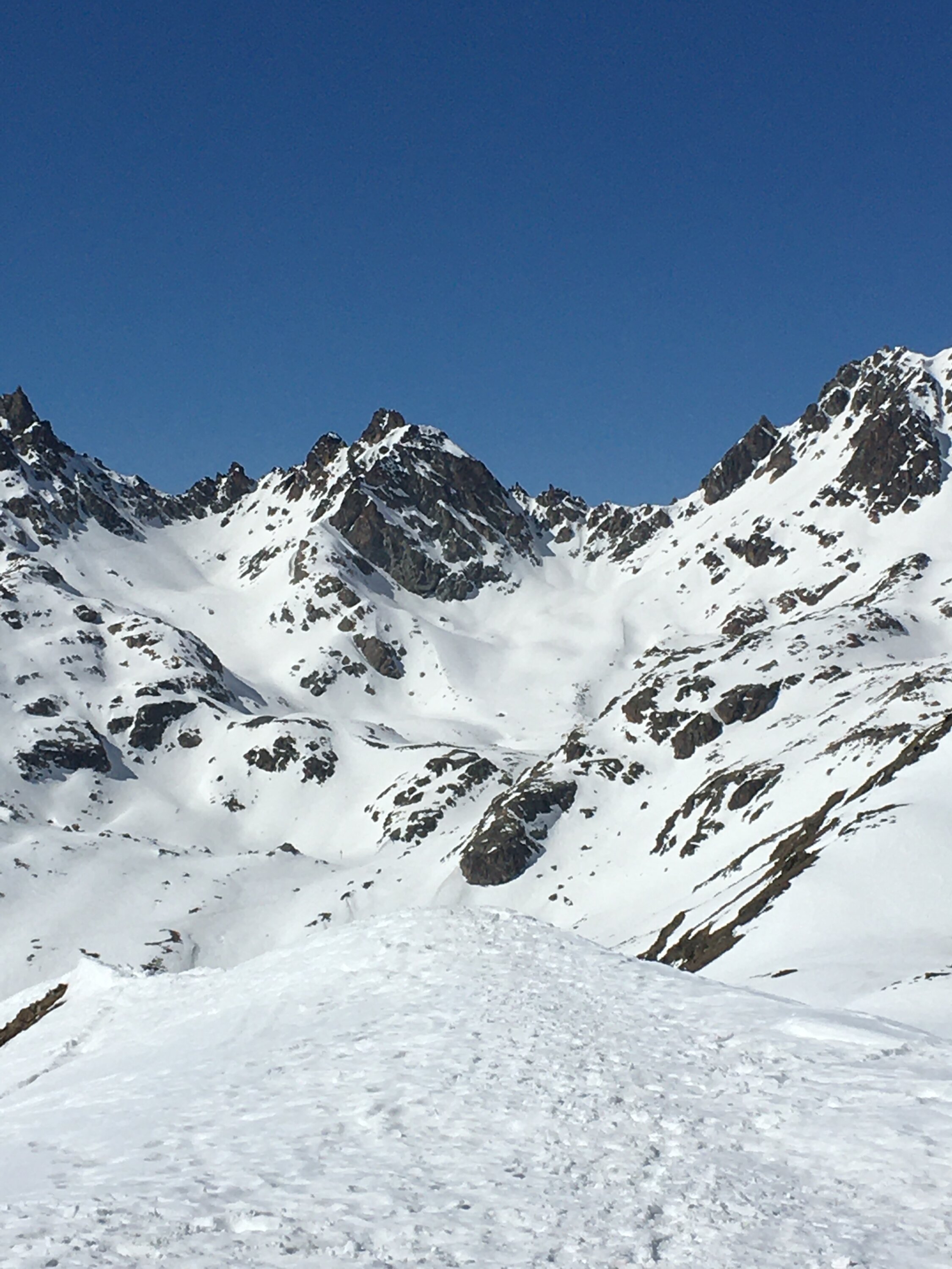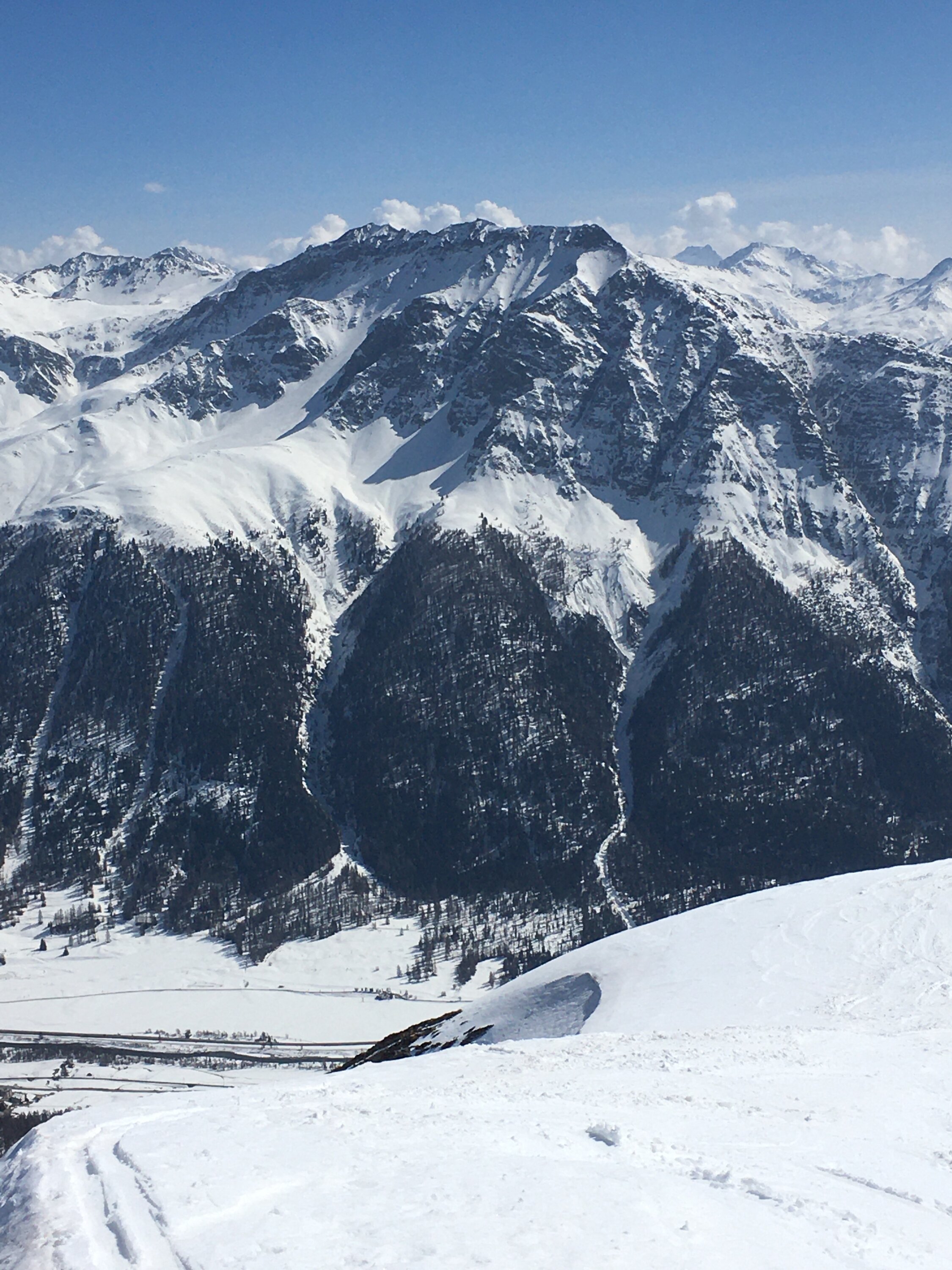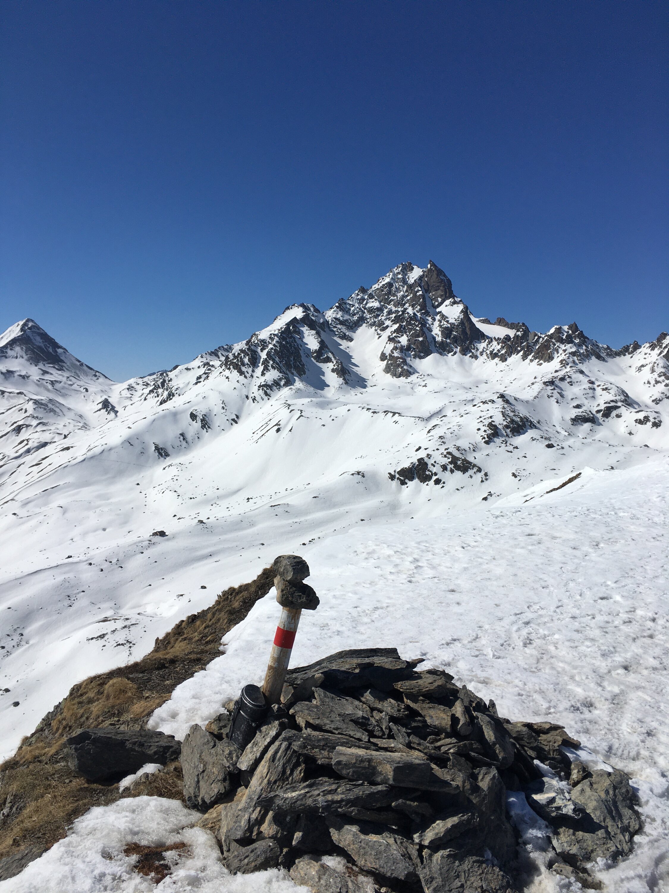 Start 10 Uhr Bergstation Pizzerlift, 0 Grad, windstill. Erste Bahn 9.15 Uhr, Tourenbillet CHF 26.00. Hartschnee bis Gipfel, die steile Traverse in die Viroulamulde hat ein kurzes Stück kein Schnee und die Ski müssen getragen werden. Aufstieg Nordgrat zum Gipfel 30 Höhenmeter zu Fuss. Bin wieder der Aufstiegsroute abgefahren, Piste eher hart, habe den Verhältnissen Abfahrt über Südrücken nicht getraut, wahrscheinlich weich im unteren Teil. Der Sessellift fährt noch bis Sonntag, 20. März.