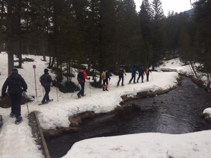 Vollmond-Wanderung mit dem VSGS (Vereinigung Schweizerischer Gebirgssoldaten Z.T. hat es nicht mehr durchgehend Schnee. Aber noch gut machbar