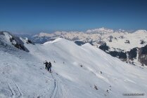 Hart gefroren ab dem Start. Es hat genug Schnee auf der ganzen Route. Die Spur ist teilweise etwas eisig und rutschig. Fussaufstieg zum Gipfel mit gutem, aber hartem Trittschnee. Für Unsichere sind Steigeisen empfohlen.