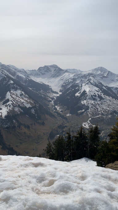 Oben Hartschnee wie auf der Piste. In der Mitte an Sulzen. Dr untere Teil ist nur noch über due Strasse fahrbar.