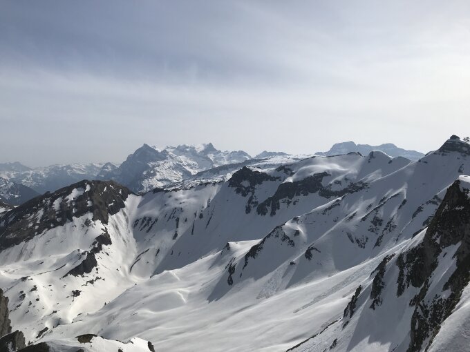 Wir sind um 7.00 Uhr in Weglosen gestartet, genossen in der Druesberghütte Kaffee und Kuchen und sind nach einer längeren Gipfelrast um 11.15 Uhr abgefahren. Dies war eher zu früh, die wenigsten Hänge waren aufgesulzt. Die Verhältnisse zwischen Ski- und Hauptgipfel sind gut. Abgefahren sind wir über Steinhüttli, was zu empfehlen ist.