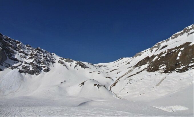 am Morgen über den Engstligenalpboden gefroren. Ab Schönbühl dann zunehmend etwas weich. Der Direktaufstieg zum Verbindungsgrat problemlos. Skidepot kurz unter dem Gipfel. Etwas oberhalb dem Ammertepass ist der Zustieg auf der normalen Route schneefrei. Um 10.45 Abfahrt - Schnee schon aufgesulzt.