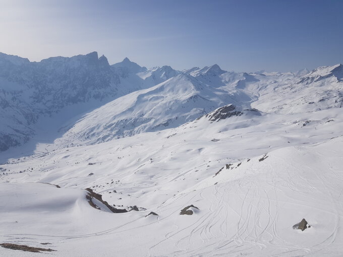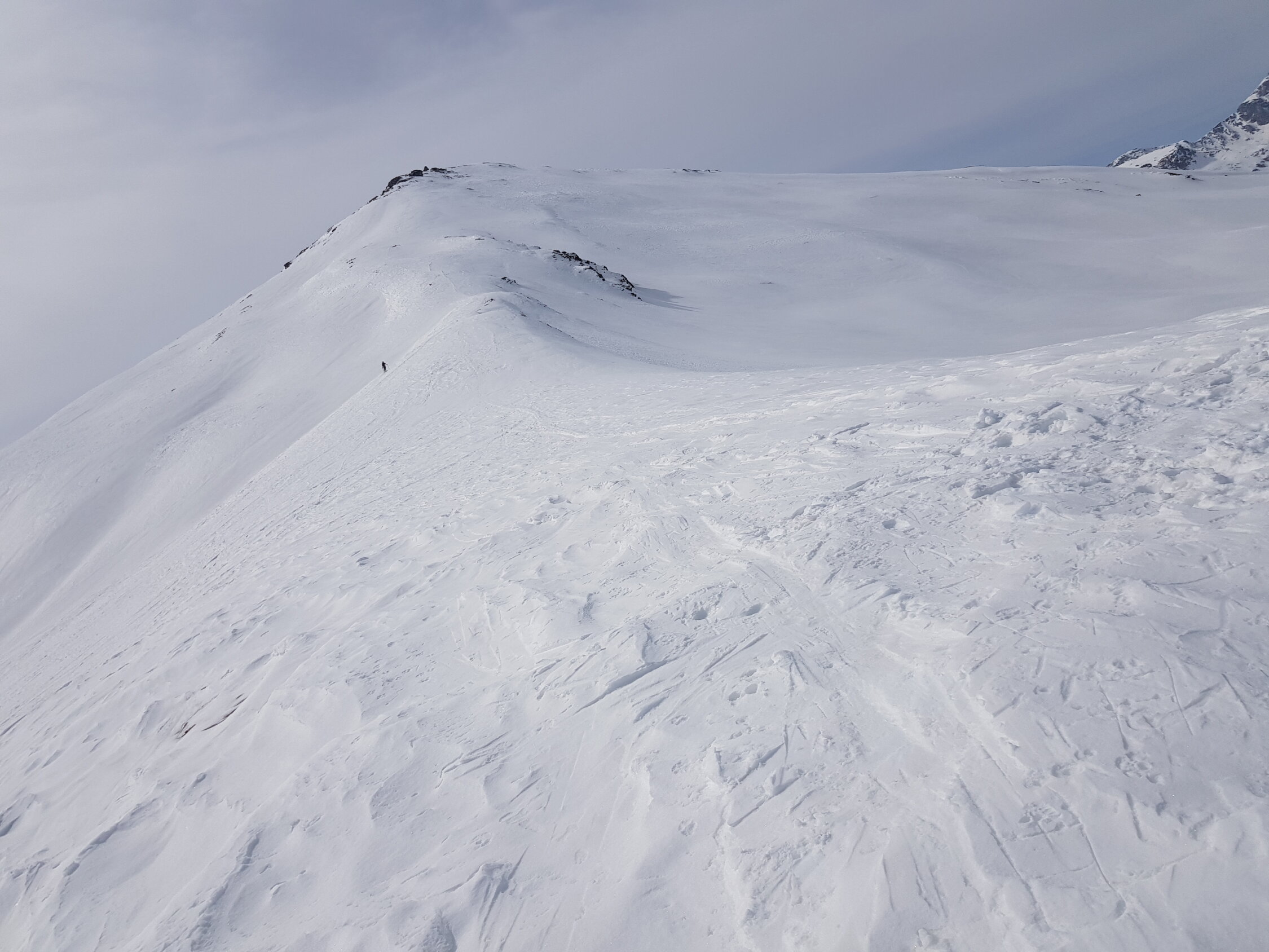 Wir sind mit den Bahnen auf den Piz Martegnas und dann runter nach Radons. Man kann eine Skitourenticket für CHF 40 kaufen. Das Wetter war zwar sonnig und gegen Mittag auf dem Gipfel sogar angenehm warm, aber leider war die Schneedecke zum grössten Teil pickelhart gefroren. Für den Aufstieg waren Harscheisen kein Luxus und die Abfahrt war ein reiner Schüttelbecher, ausser ein paar kurzen Hängen, wo der Schnee doch etwas weich geworden war. Schade! Die Abfahrtshänge des Piz Mez sind eigentlich phantastisch - breit, gleichmässig und mässig geneigt, gut einsehbar. aber heute spielte der harte Schnee nicht mit.