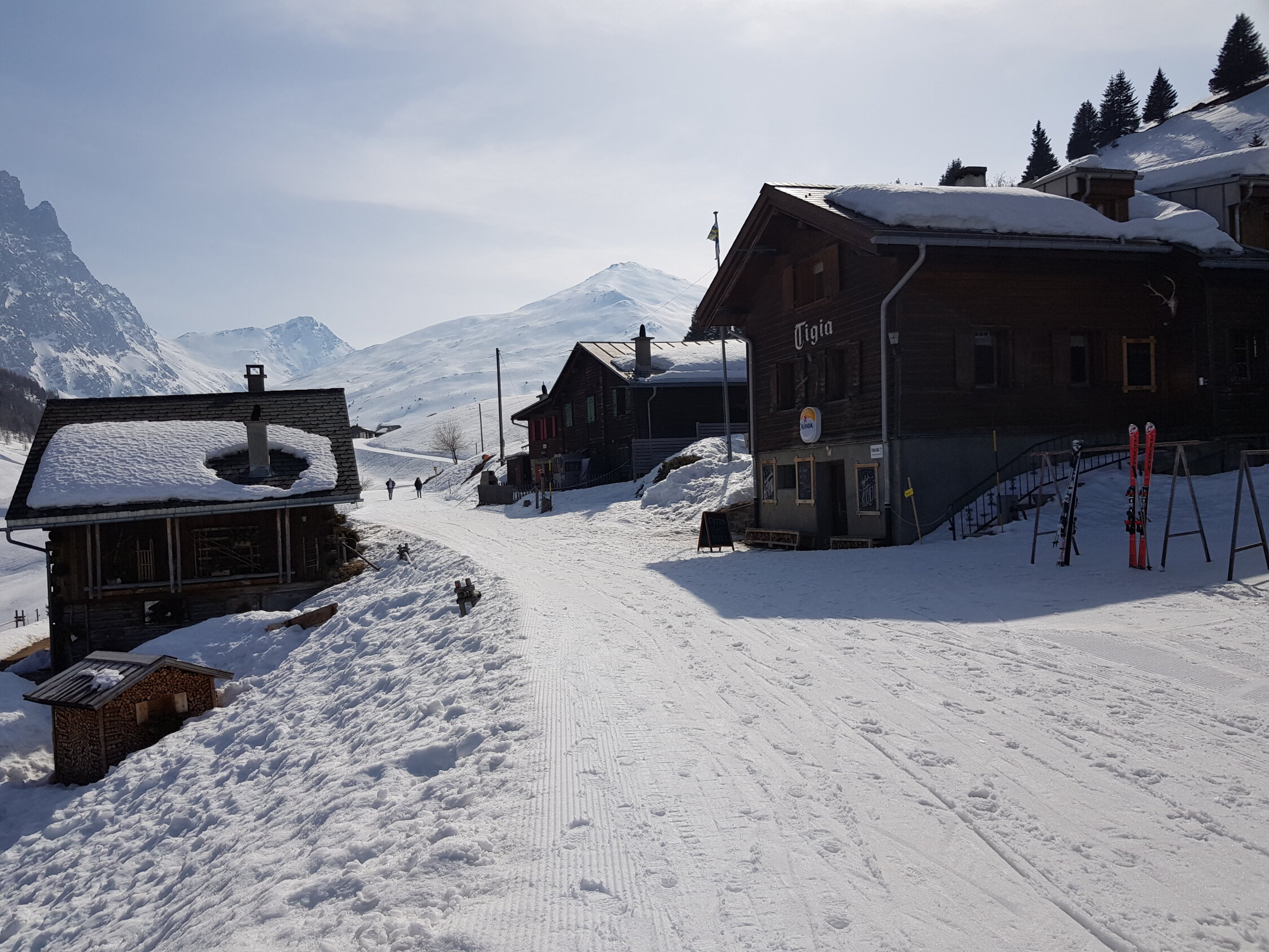 Für die Talabfahrt von Radons nach Savognin wählten wir den gut schneebedeckten Schlittelweg, war fast das schönste Fahrerlebnis der heutigen Tour.