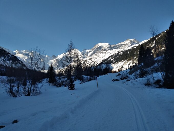 Bis Chünetta schon einige Tragstrecken. Die steilen Hänge oberhalb Chünetta im lichten Baubestand sind schwierig zu fahren. Glashart neben Faulschnee. Südhänge und Südosthänge oberhalb der automatischen Wetterstation leicht aufgesulzt.