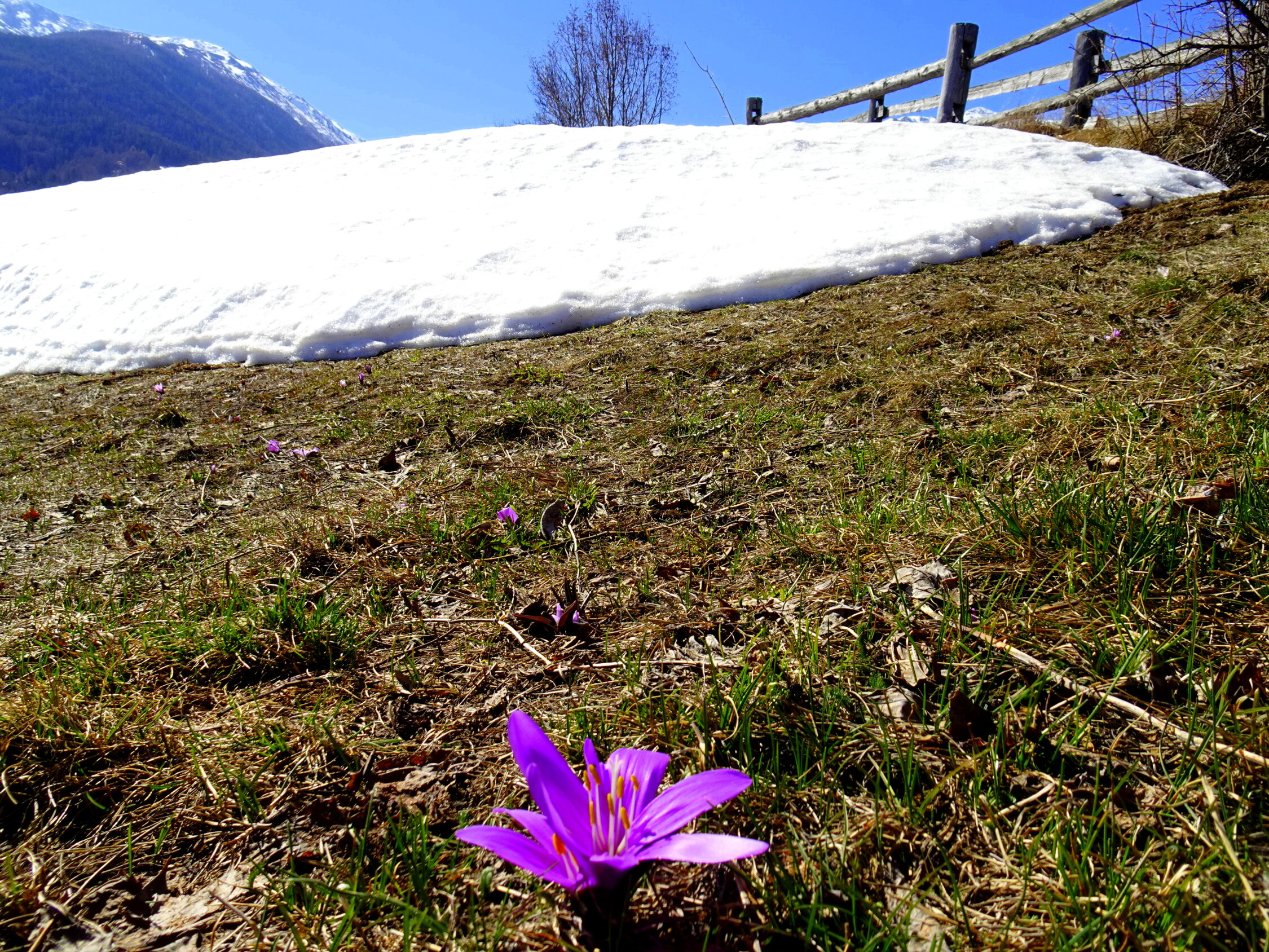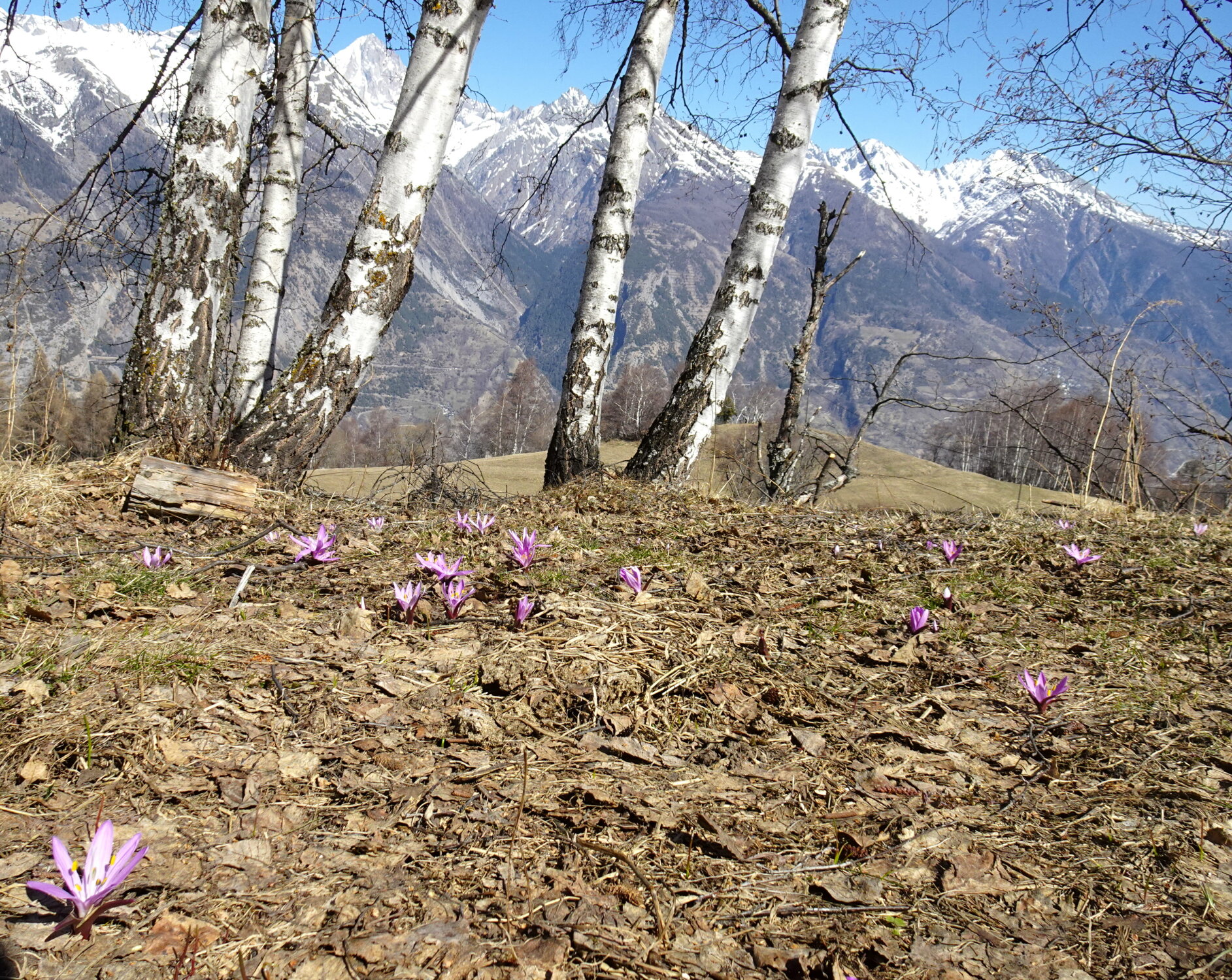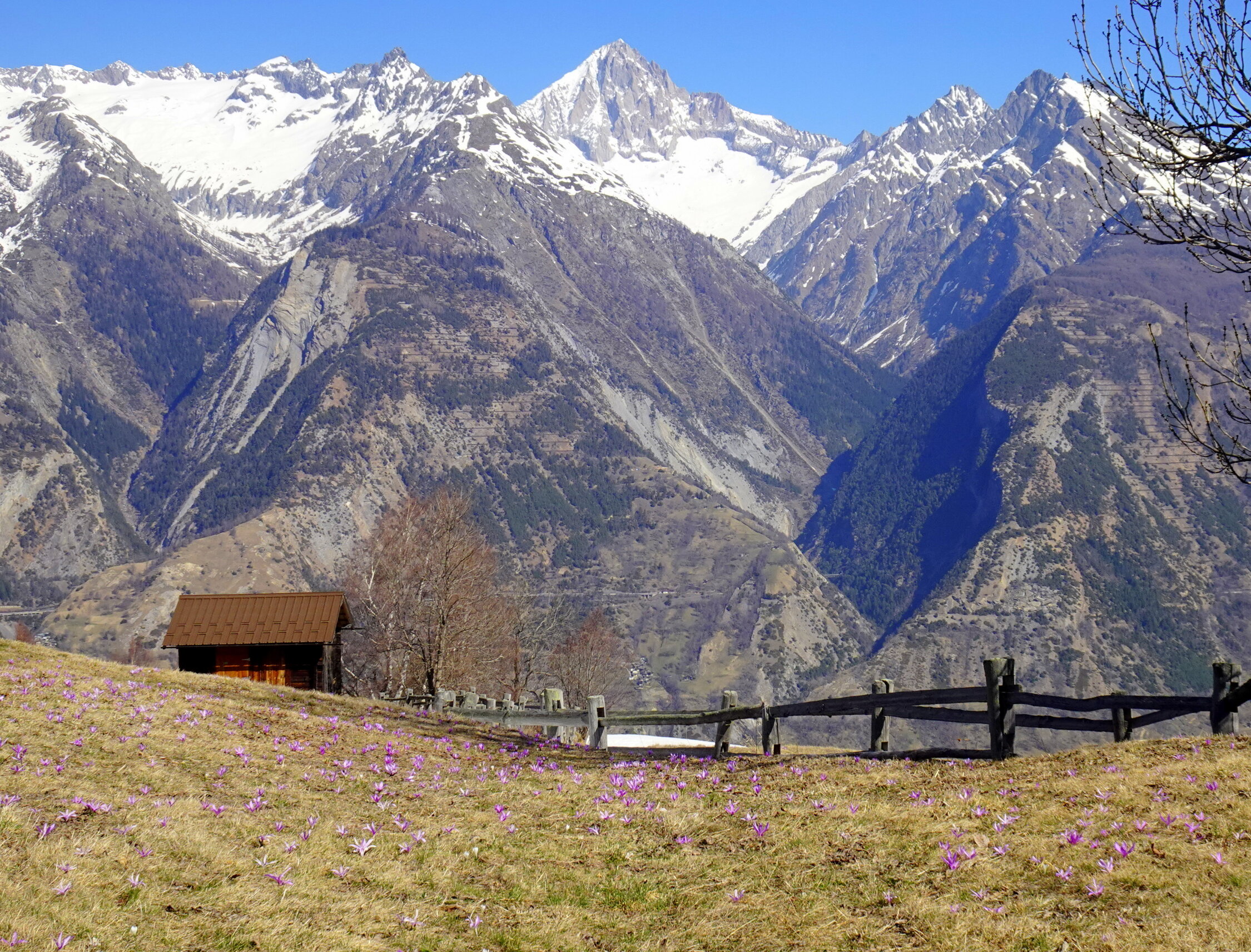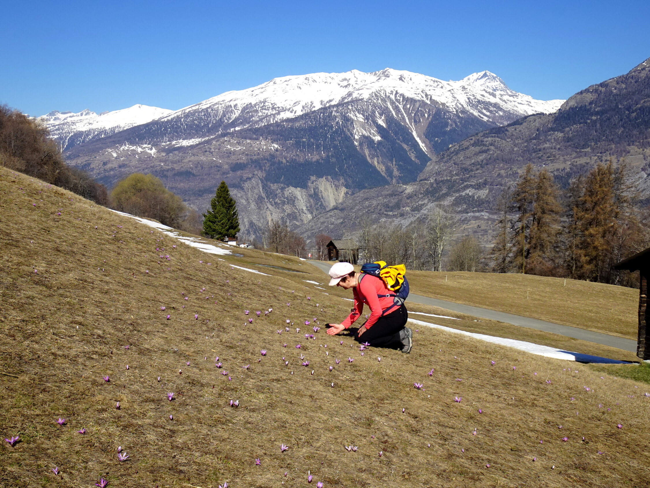 Der Suone nach hat es noch ziemlich Schnee und viel Wald, ungünstig für Blumen.