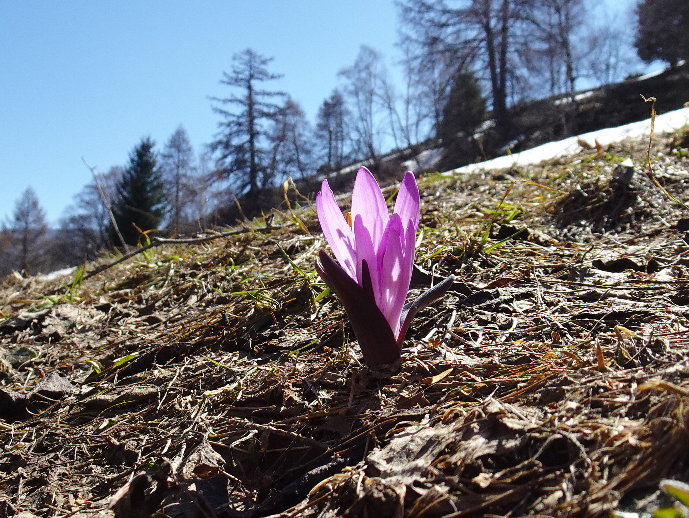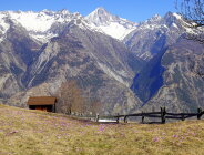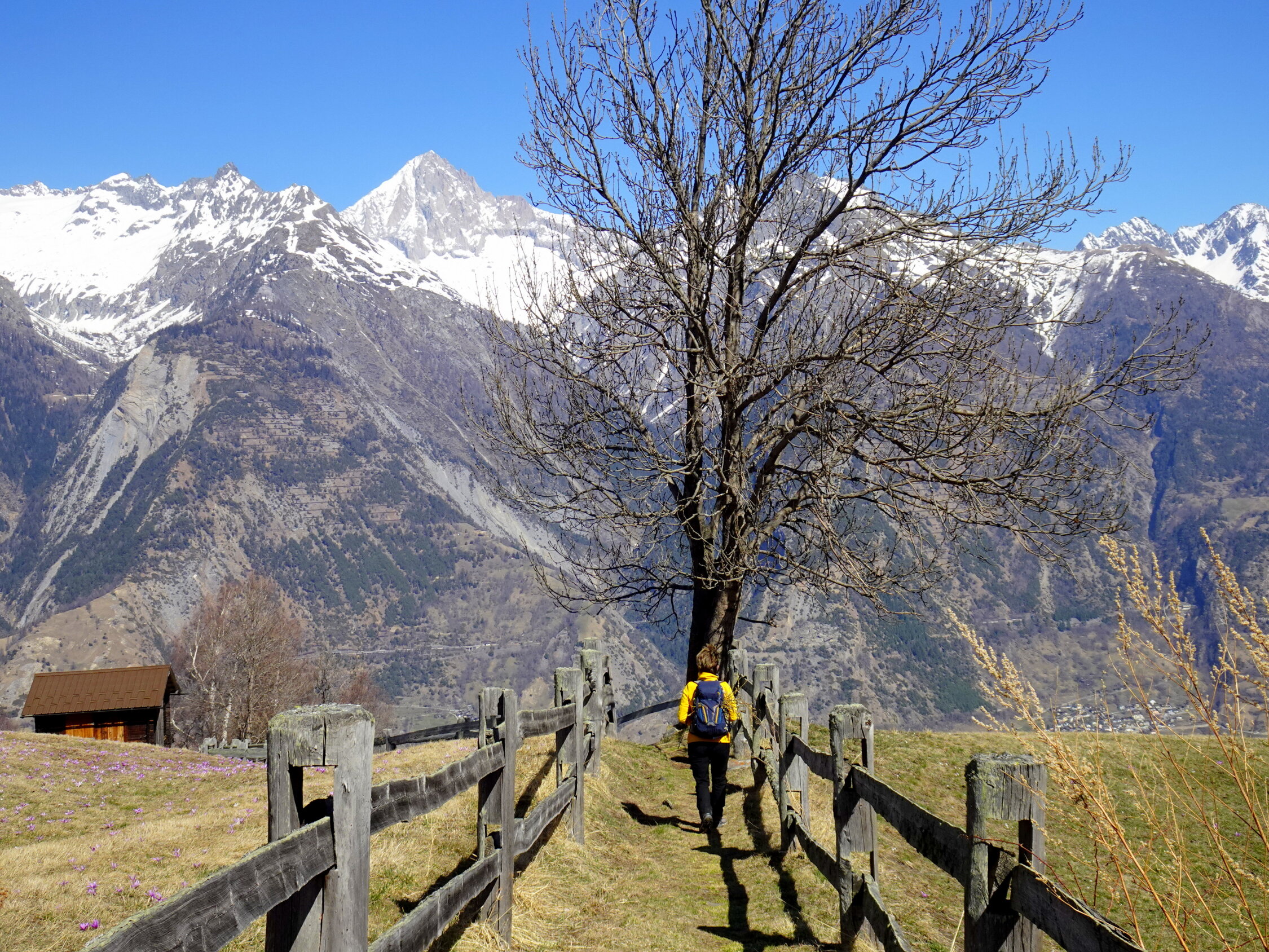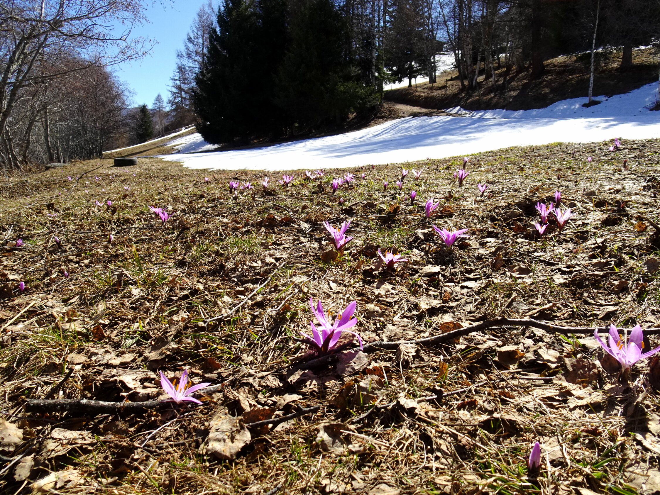 Der Suone nach hat es noch ziemlich Schnee und viel Wald, ungünstig für Blumen.