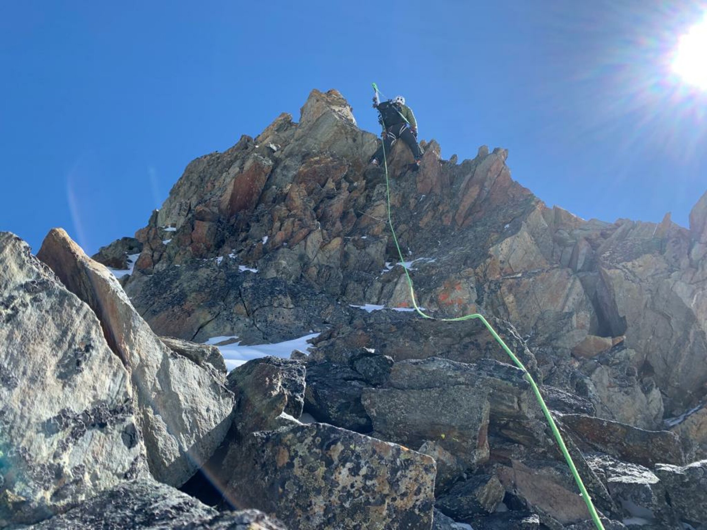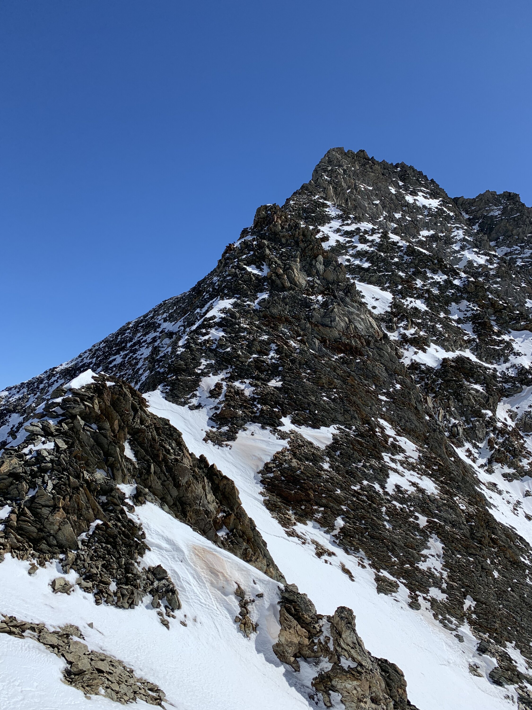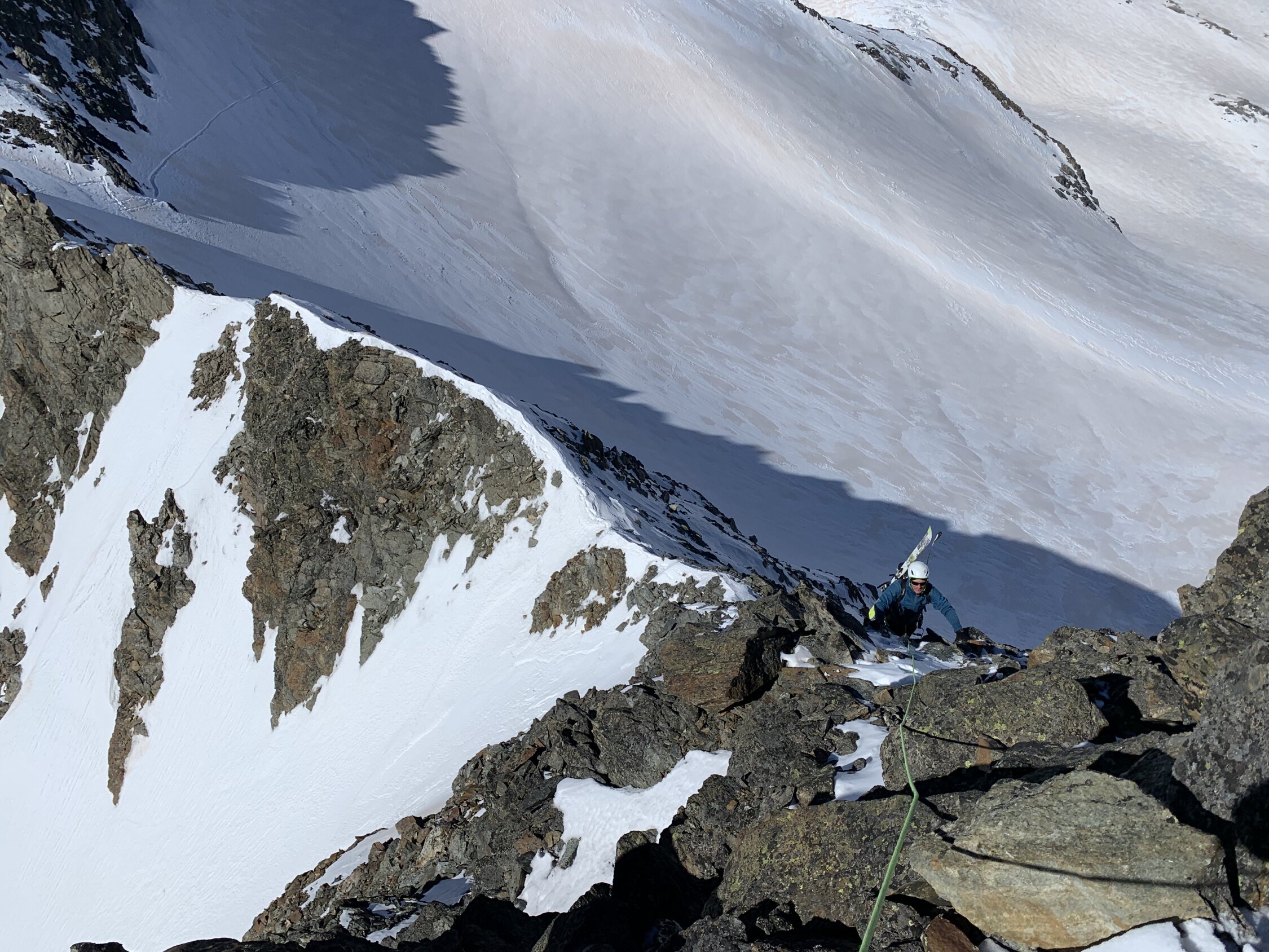 Traverse Ankenbälli -P3236 m top. Nordgrat Sehr gute Verhältnisse, der Schnee hält den Bruchhaufen gut zusammen.