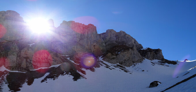 Wir sind um zirka 10 Uhr auf dem Säntis gestartet und haben erstaunlich gute Verhältnisse angetroffen. Die Hänge hatten aufgefirnt und waren sonnseitig schön zu fahren. Der Aufstieg zum Bötzel/Widderalpsattel ging im harten Firn ohne Harscheisen.