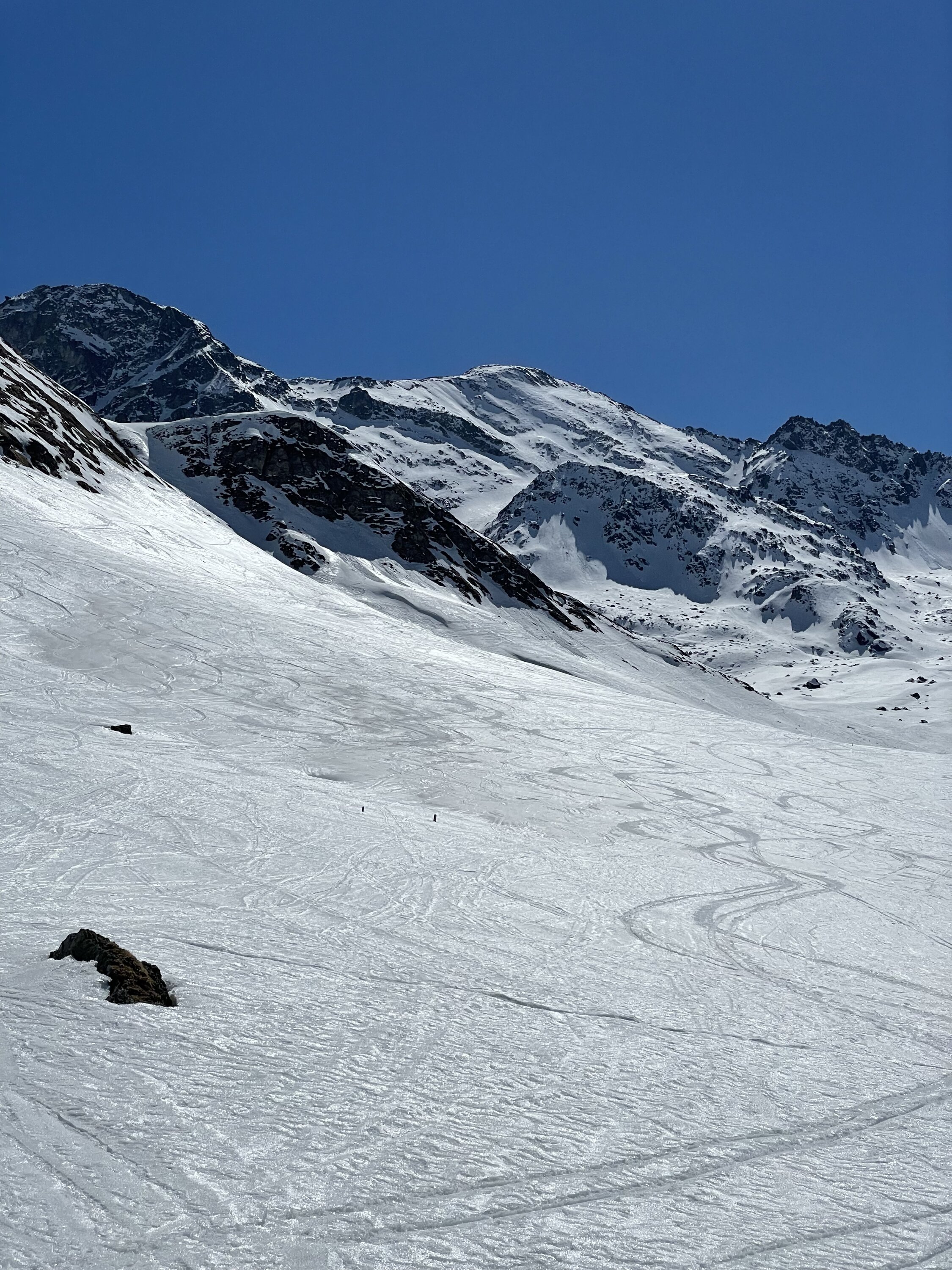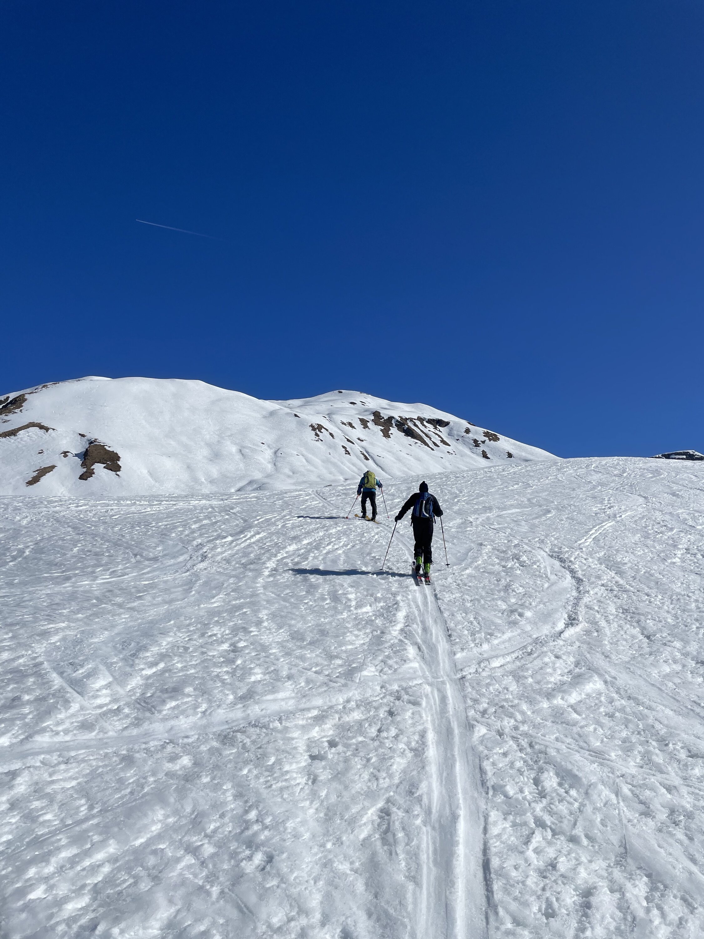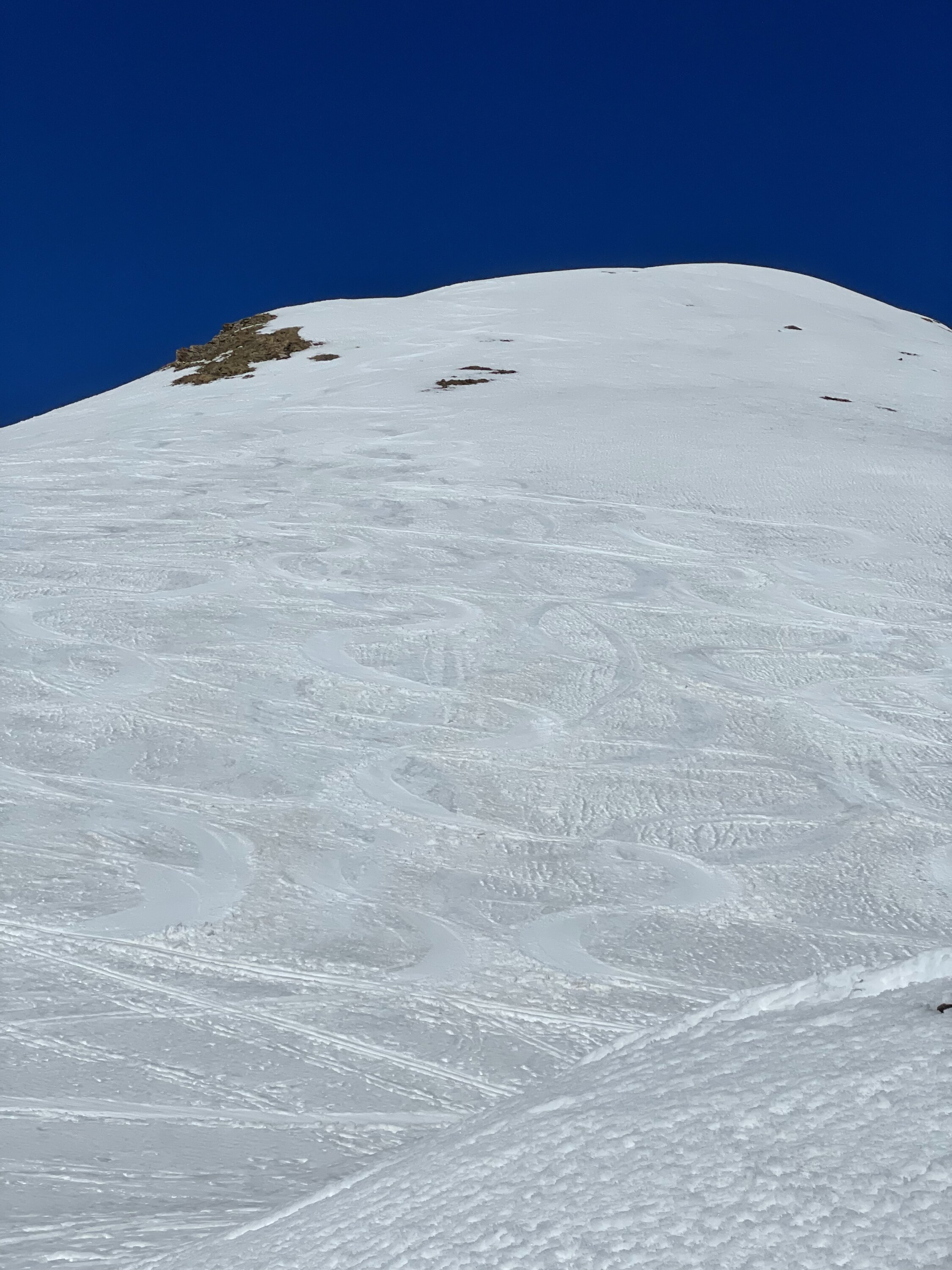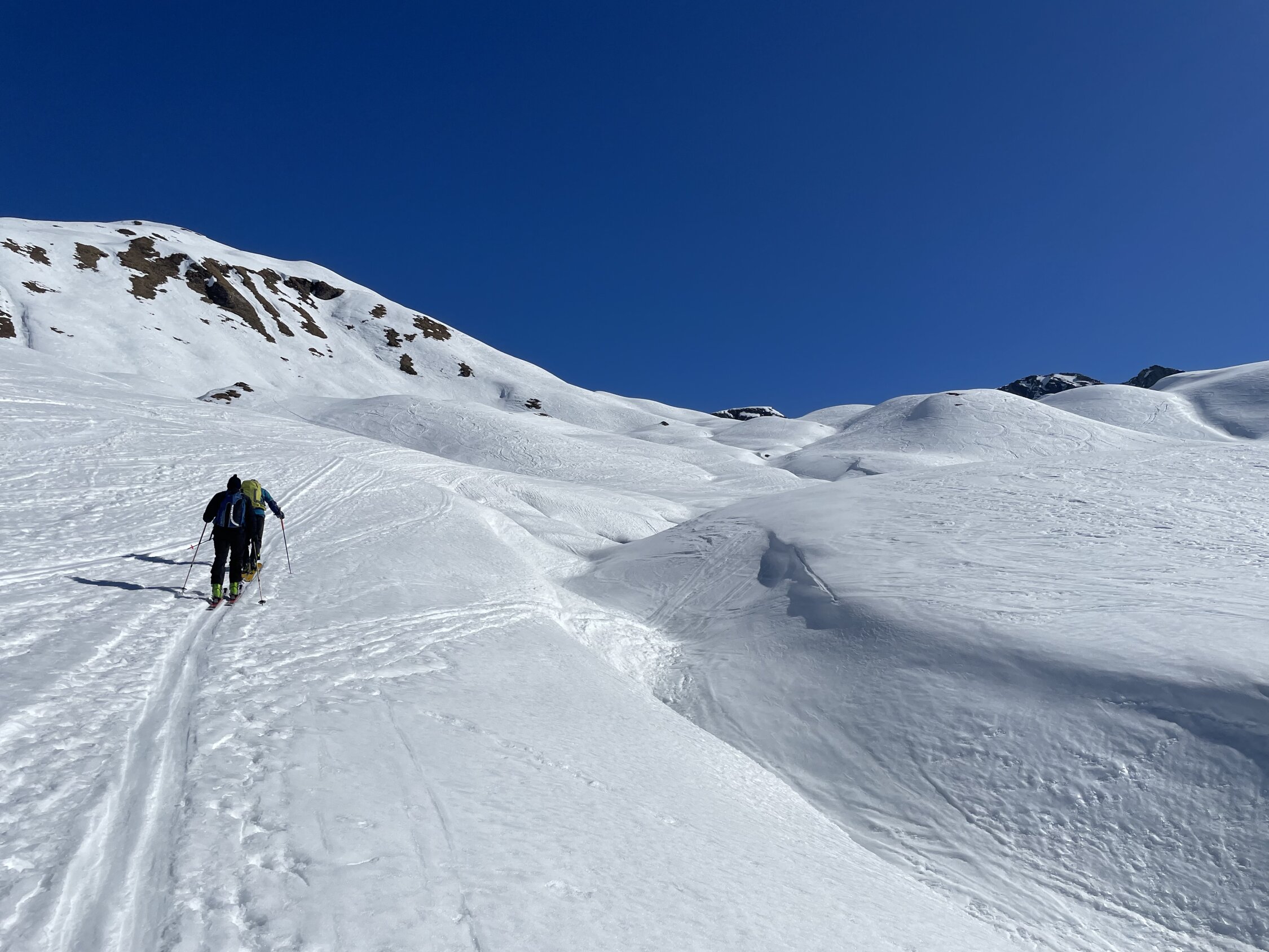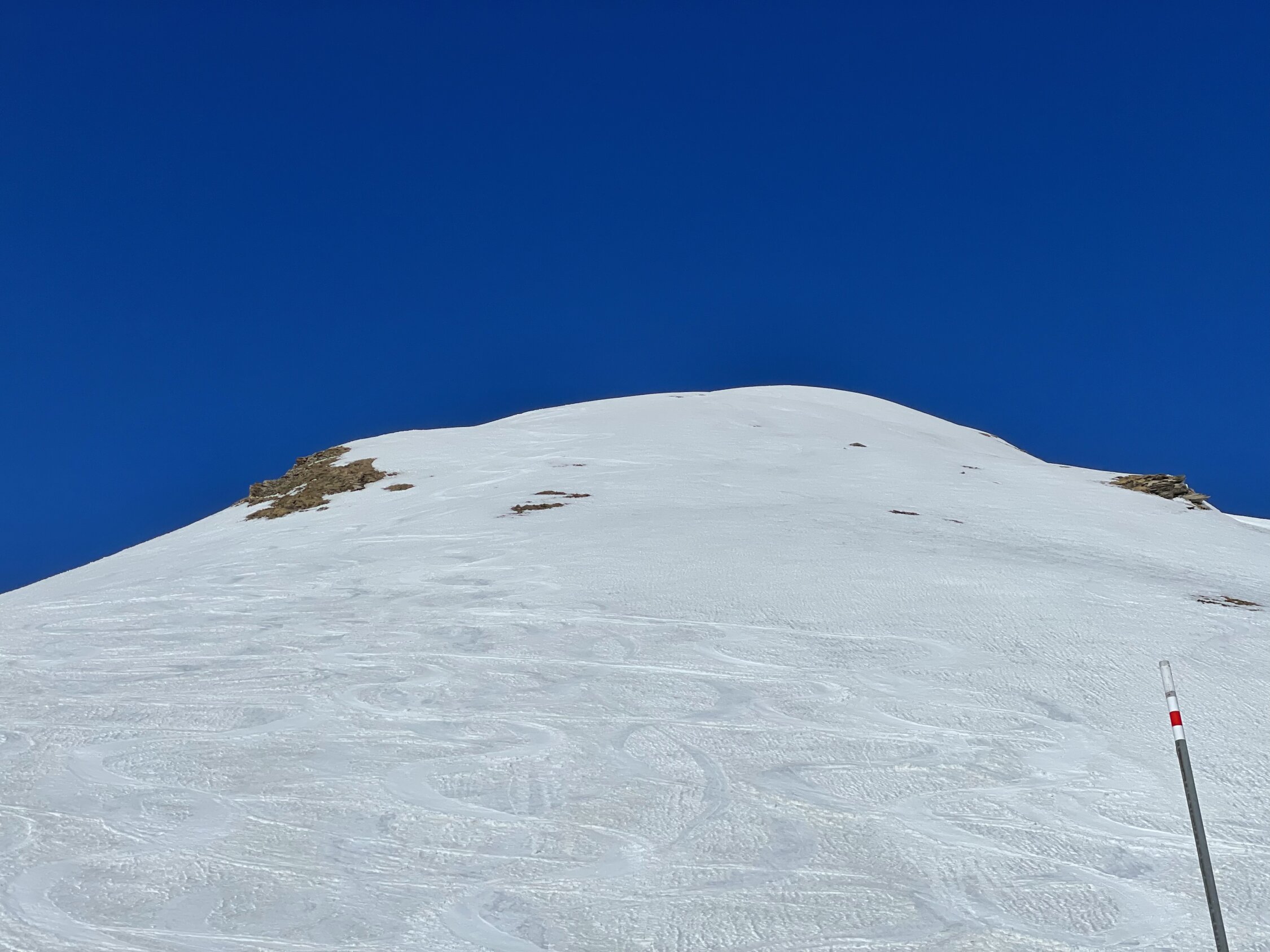 Wie überall hat es auch hier nicht gerade viel Schnee, aber doch etwas mehr als im Engadin. Start bei -6 Grad. Von Bivio geht es erst ziemlich lange flach ins Tal, bei hart gefrorenem Schnee. Dann über sanfte Hänge zum Pass auf 2500 MüM. Von da auf guter Spur bei geschickter Routenwahl ohne Harsteisen steiler zum Gipfel. Abfahrt zuerst super Sulz im steilen Gipfelhang von oben gesehen links, dort noch unverfahren. Im weiteren dann immer schön den Sonnenhängen nach, dort schön aufgesulzt, abscheinig dagegen hart und unschön. In der Ebene hin zu Bivio weiterhin schöner Sulz, zuletzt toller Feinripp auf der leeren Piste.