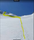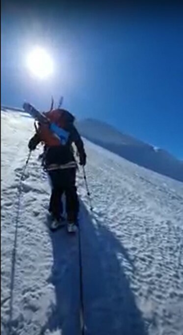 On the way up to the summit, there are a couple of crevasses that we had to jump, but nothing too big. Maybe it's possible to go around them on the skis.