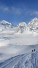 Getting close to the hut, it gets flat and even a bit uphill, so the splitboarder had to skate.