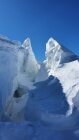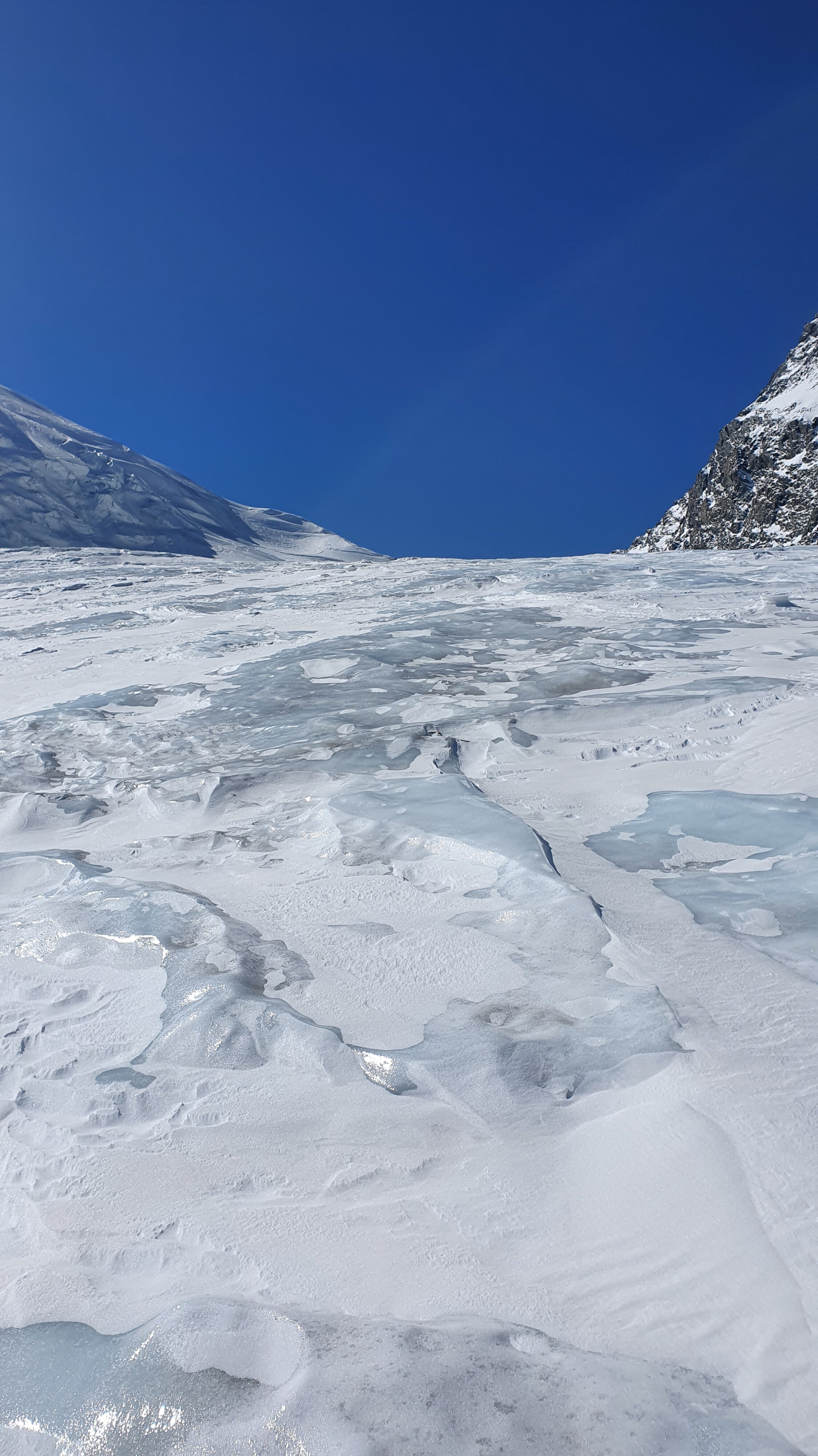 First we went at the right side of the glacier, then a bit left to avoid the big crevasses/seracs. Here there was solid ice but it was passable with care. There were a couple of hidden crevasses here, keep your eyes open.