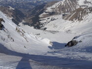 Querung in den Sattel unterhalb vom Landvogthorn: Abfahrt über die Nordflanke wenig überraschend Prädikat "schlecht", weil um diese Zeit (11:30) beinhart. Unten ab Steinboden dann nur noch schöner Sulz.