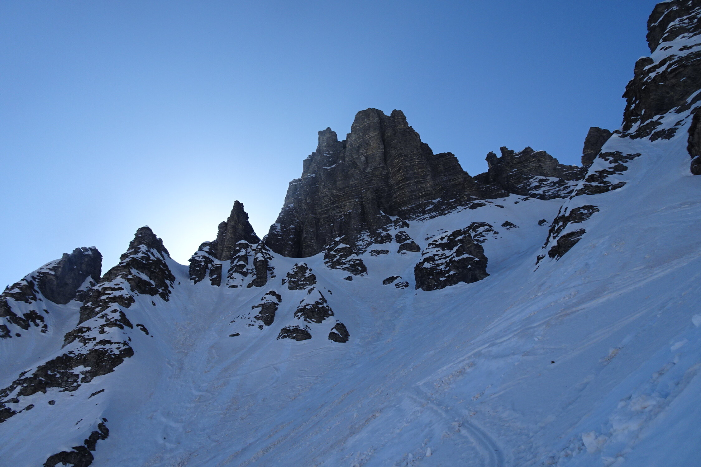 Am 30. September letztes Jahr hatte ich das Türmlihorn als T6-Alpinwanderung besucht. Heute als Skitour abseits vom Mainstream. Ein toller Berg für den alpinistisch interessierten Skitourengänger (mixed). Dabei ist die Begehung im Winter bei guten Bedingungen faktisch angenehmer, weil man sich die endlosen Geröllflanken spart.