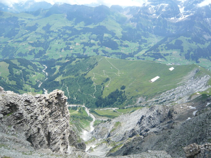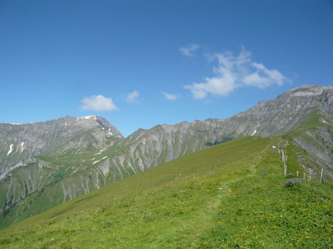 Fahre nach Ausserschwand und durch den Tschentenwald hinauf zu P. 1625 wo ich parkiere. Beim Skilift gehts hoch zur Schwandfälspitz und auf dem Grat weiter bis P. 2125 wo ich halbrechts hinaufsteige zum Härdigs Höreli. Jetzt wirds steiler es geht über und neben schieferblockigen Türmen hinauf quere dann links in eine düstere nasskalte Schlucht wo ich zügig (Steinschlag!) nahe an der Felswand rechts aufsteige bis hinauf zum Sattel. Hier ein erster wunderbarer Ausblick ins Obersimmental dann gleich weiter links dem Grat entlang über einen grossen Felsblock mit Fixseil direkt hinauf zum Gipfel. Im Abstieg gehts hinüber zum Landvogtehore wo ich nochmals den prächtigen Ausblick geniesse. Jetzt gehts ins Rügge Tälti, überquere da ein grosses Geröllfeld bis links hinüber zu P. 2310 und über diverse felsige Grasschrofen hinab zum Pfad der mich hinauf zum Furggeli führt. Weiter dann hinab zur Alp Furggi und über den nicht mehr enden wollenden Gsürweg zurück zur Schwandfälspitz hinab zum Ausgangspunkt.