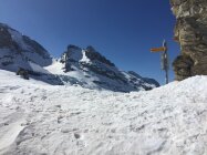 Im unteren Teil kaum Schnee, auch bei der Passage durch die Felsen zum Unterbärgli ist der übliche Lawinenkegel schon abgetaut. Durchgehend Schnee ab Oberbärgli, im Aufstieg bestens tragend.