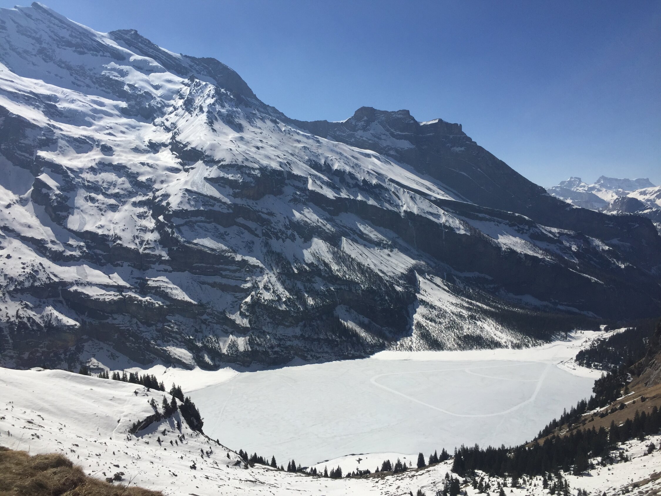 Die Seilbahn hat Revisionspause, somit am Morgen sehr ruhig am Oeschinensee, während am Nachmittag doch recht viele Wanderer unterwegs waren. Der See ist offiziell gesperrt.
