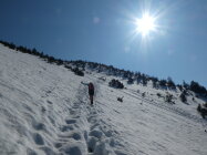 Für den Abstieg empfehlen sich Schuhspikes, der Schnee ist zumindest morgens um 11 noch recht hart.