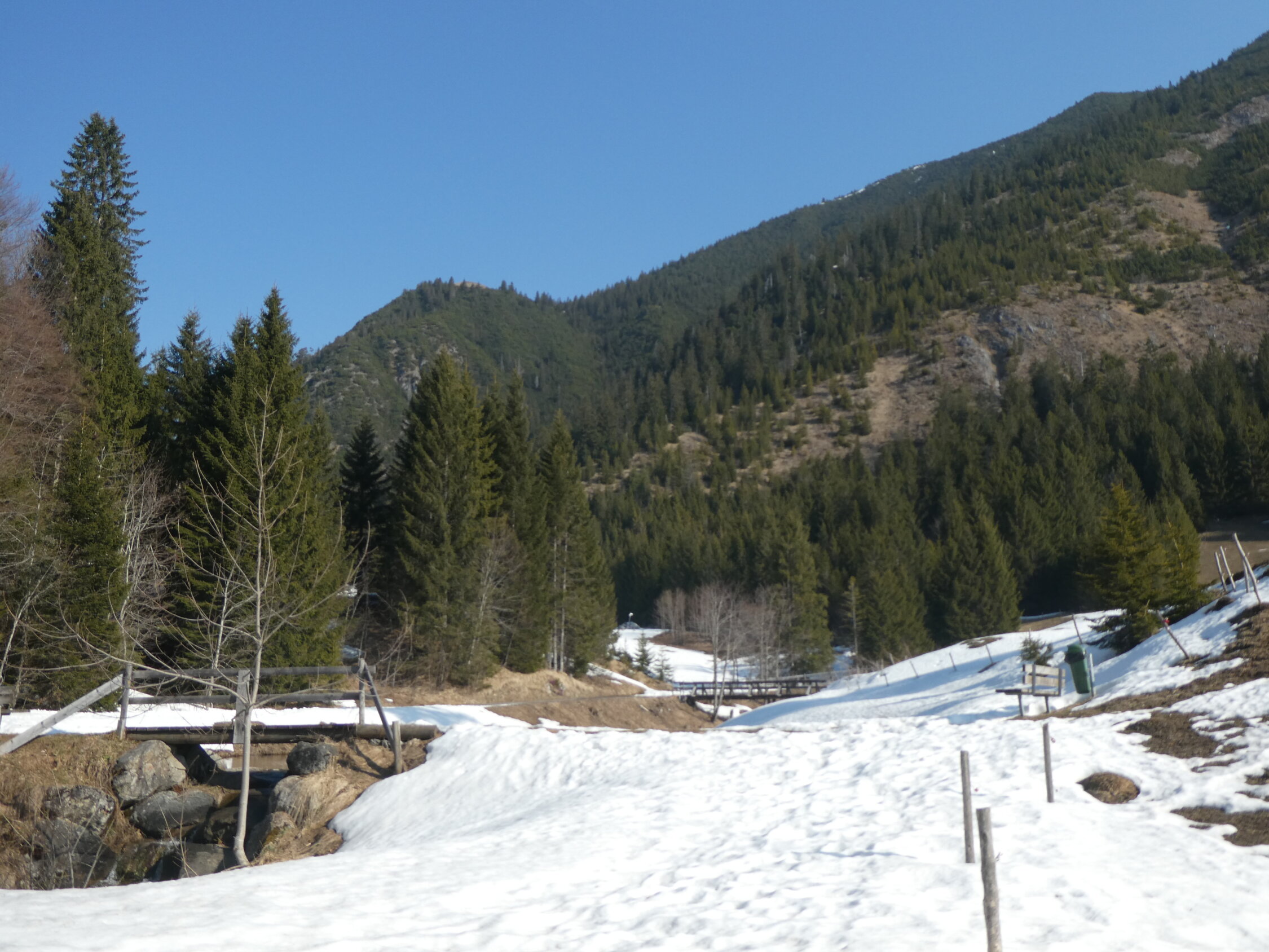 Weg bis zur Fraßenhütte ist zu 80% schneefrei, problemlos begehbar.