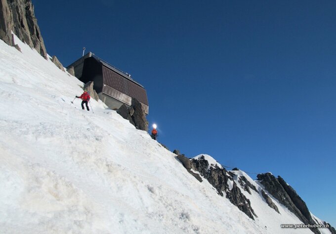 Strahlend schönes Wetter. Oben etwas Südwind. Heute fuhr die erste Bahn schon um 8 Uhr. Die erste Abfahrt vom Gemsstock Richtung Gafallenlücke war um 8:30 Uhr sehr hart und rechts verspurt. Aufstieg zur Gafallenlücke mit guten Tritten problemlos. Die Abfahrt durchs Guspistal bis P2405, wie zu erwarten, hart und oft verspurt. Aufstieg dann problemlos bis zum Skidepot unterhalb des Couloirs. Mit harten, aber guten Tritten auf die Schulter und anschliessend schneefrei auf den Gipfel. Einige Tourengänger benutzten Steigeisen im Couloir, nicht falsch.