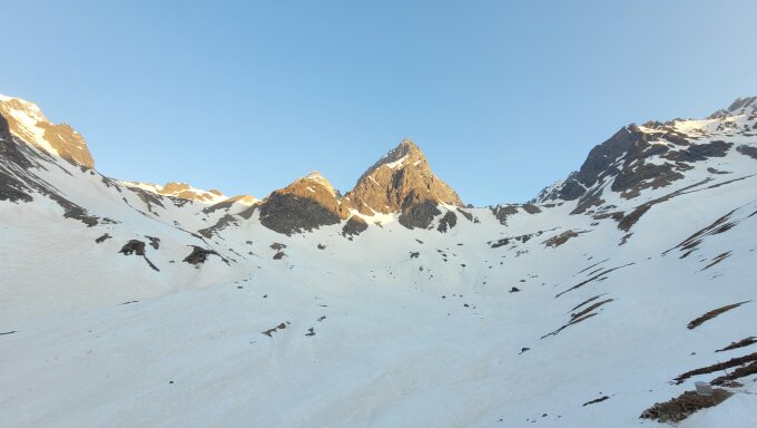 Aufstieg ab Tuoihütte tipp topp griffiger Schnee, ging ohne Harsteisen