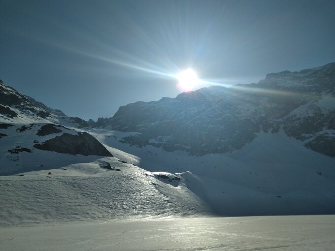 Vorwiegend Firn. Je südlicher und später die Exposition, desto sulziger.