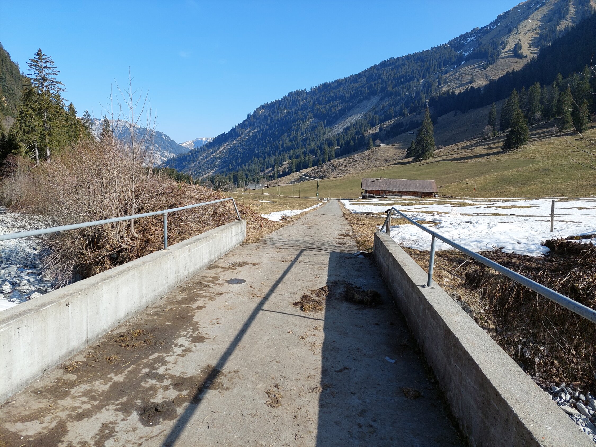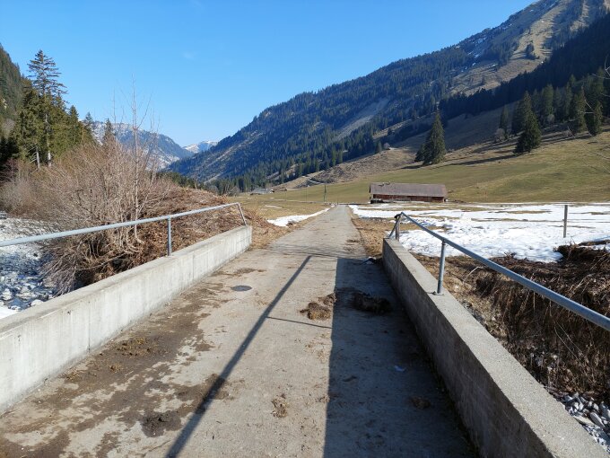 Aufstieg: Bis zur Brücke ist der Weg schneefrei. Der Aufstieg von der Brücke bis zum Gipfel