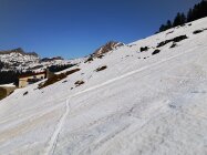 Traverse Steinhüttli-Wanghütte läuft gut. Schlussabfahrt auf der Piste Hoch-Ybrig Sternen-Weglosen noch durchgehend - will heissen ohne Tragen!