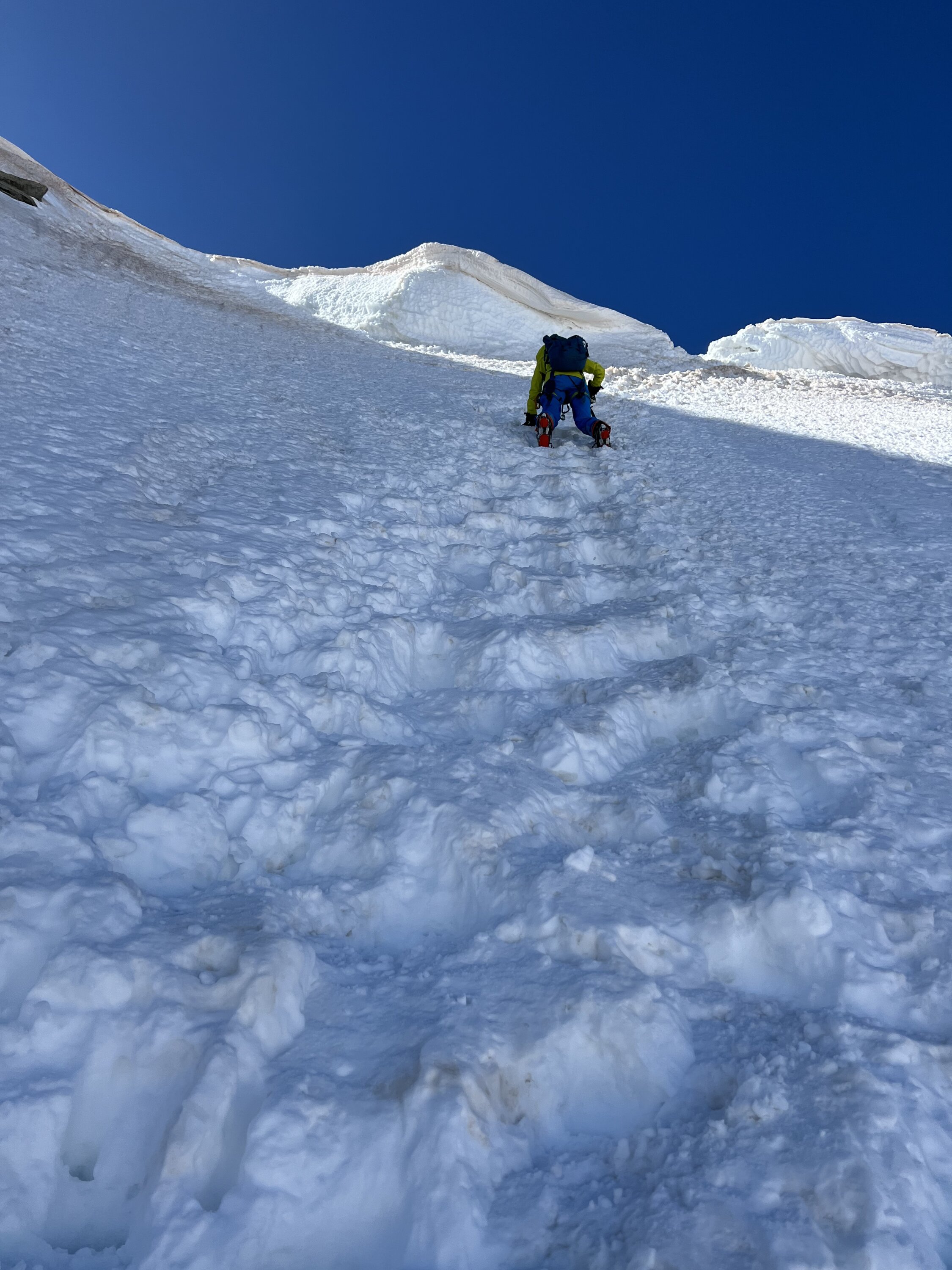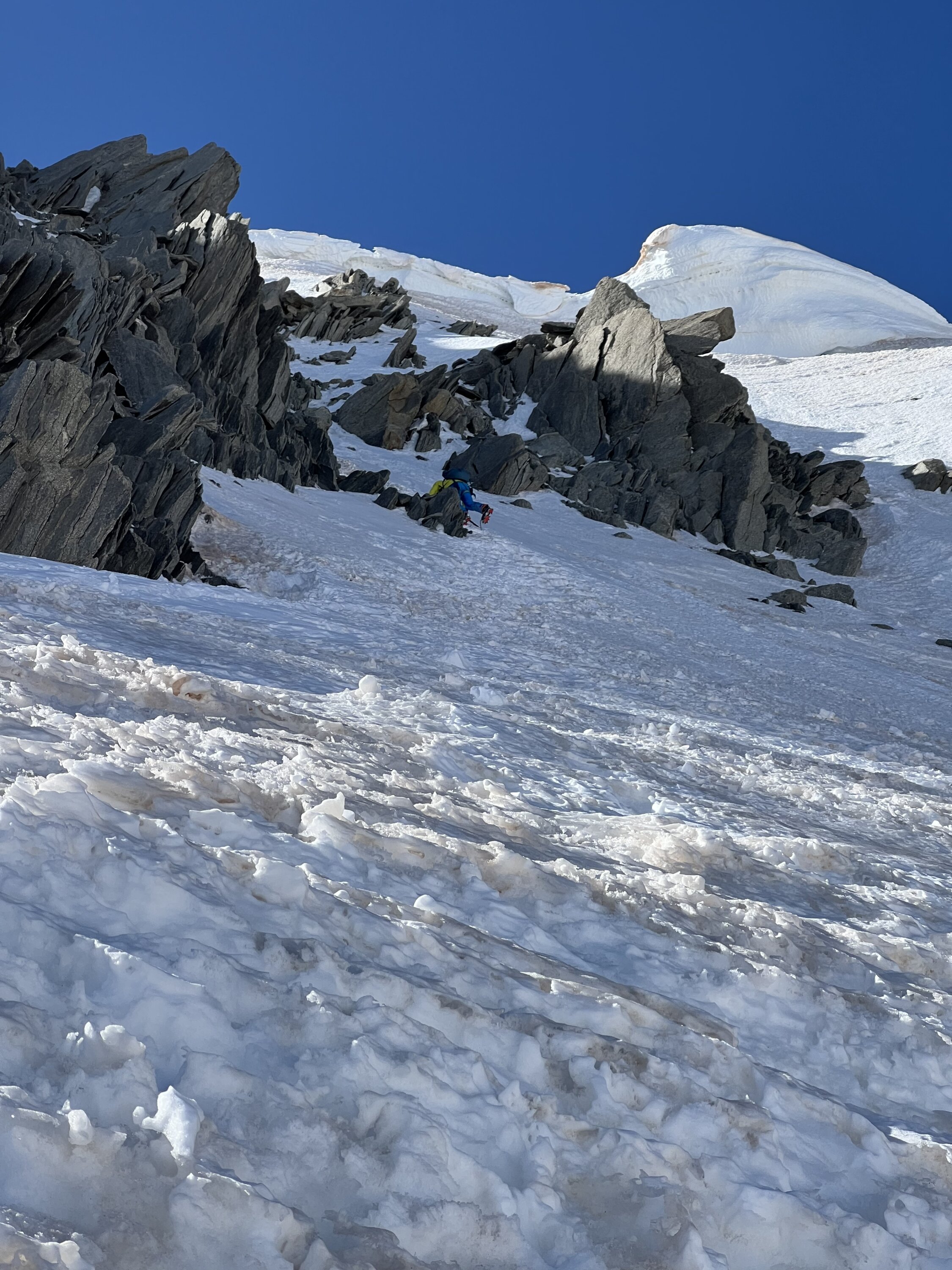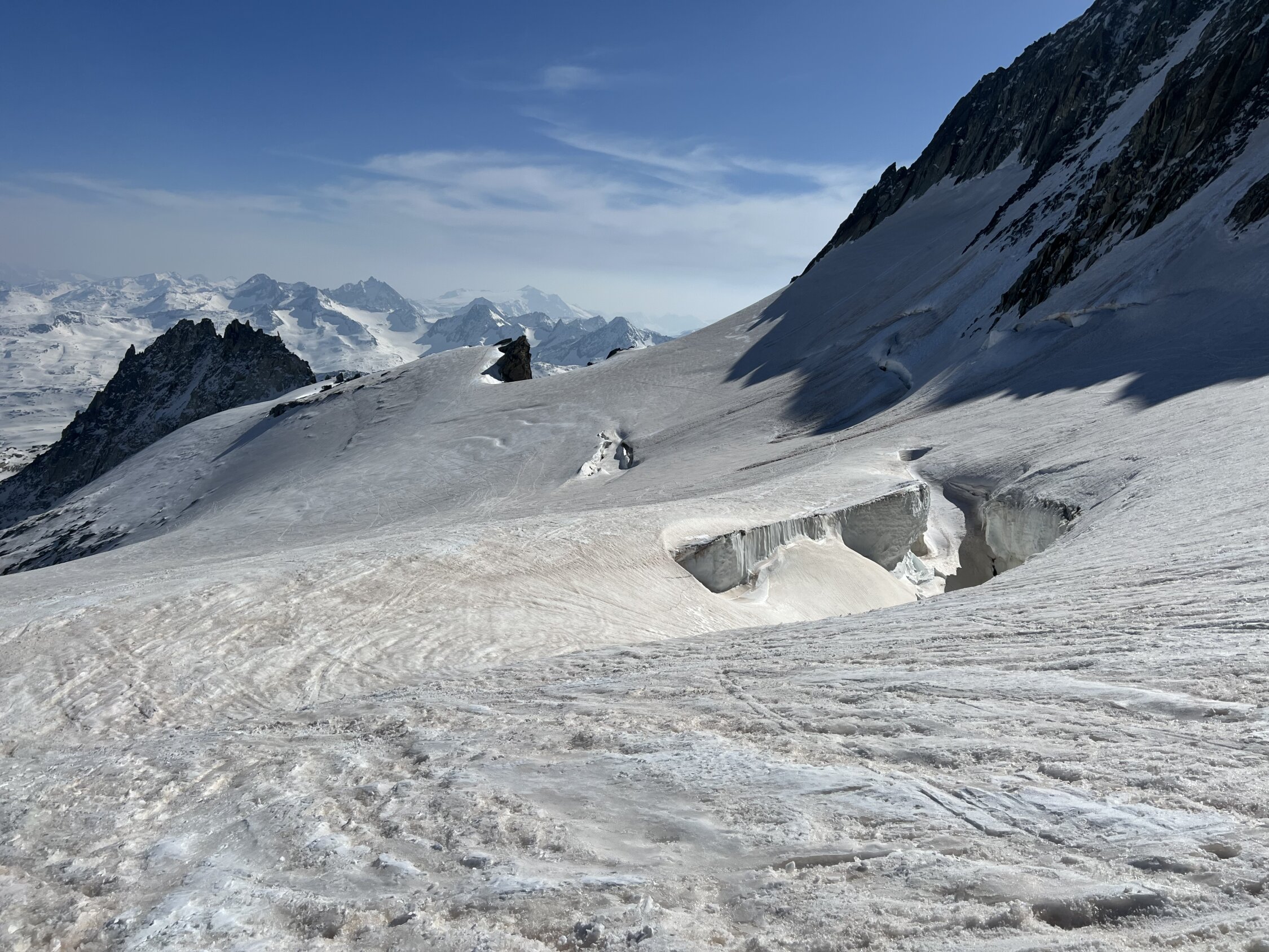 Im oberen Teil des Gletschers ab 2800 wenig Erwärmung. Schnee nur auf 5-10cm leicht angesulzt.