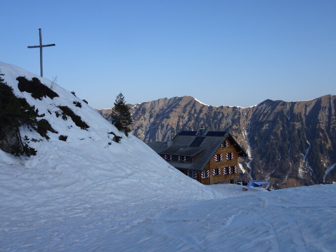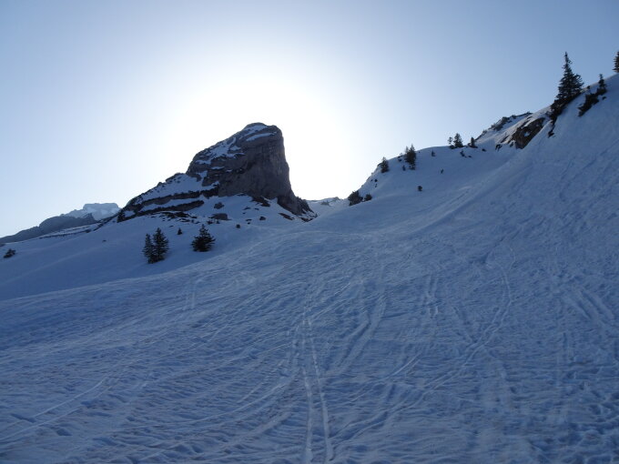 Schnee: noch genügend und in guter Qualität vorhanden, bei der Abfahrt über Alt Stafel wird es im Bereich des Baches ca.1380-1300m knapp(ev. besser direkt dem Strässchen entlang), wie überall mit entsprechend Saharastaub belastet, ansonsten top Frühlingsbedingungen, der Grat ist sehr gut begehbar(Steigeisen geben etwas mehr Sicherheit)