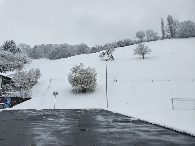 Unten ca. 15-20cm, oben 25-30cm Schnee ohne Unterlage.