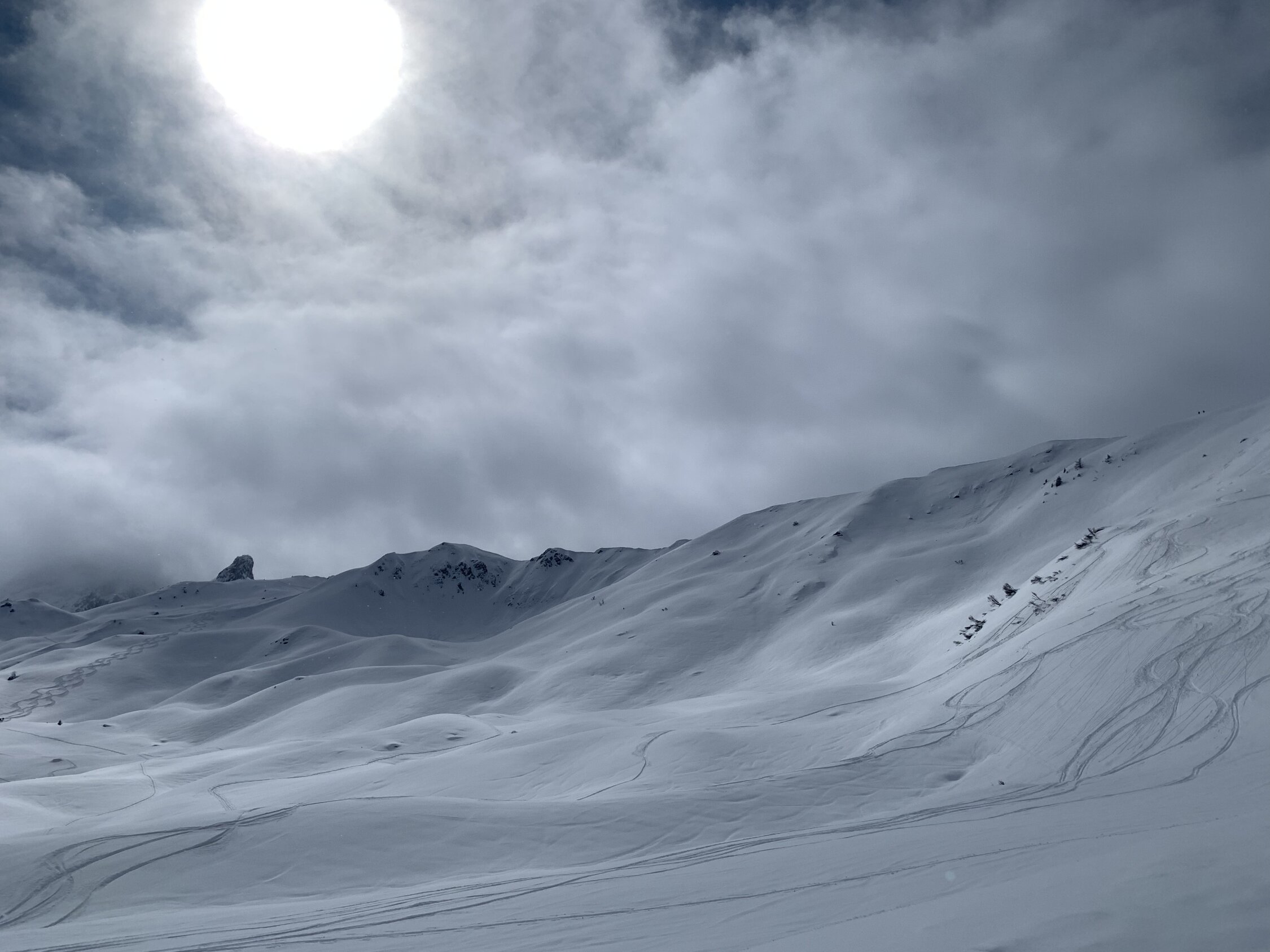 Unten 6cm Neuschnee. Gegen oben 15cm je nach Ausrichtung. Der Schnee wurde schon gegen Mittag schwer. Ansonsten gut zu fahren, wenn auch nicht so viel wie in anderen Gebieten. Auf die alte Schneeschicht kommt man schnell durch beim Fahren. Gewisse Hänge sind kritische zu betrachten bezüglich Rutsche. Sicht heute meist gut.