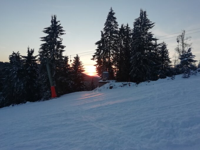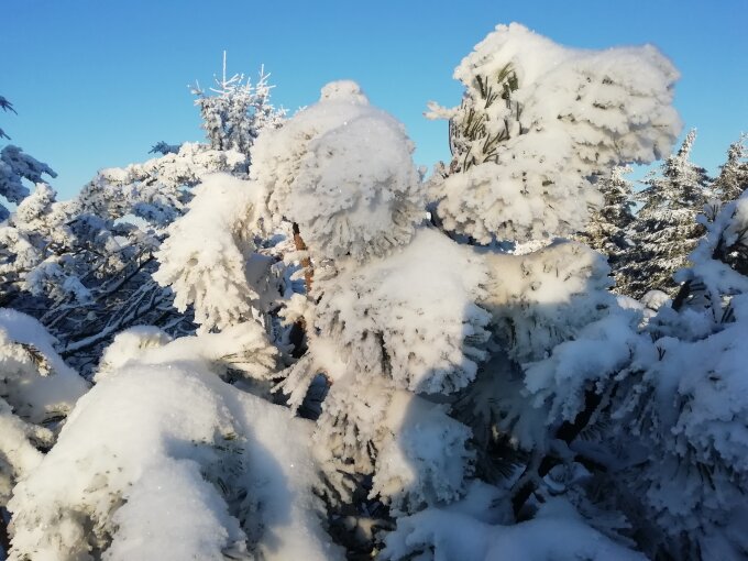 Hochwinterliche Verhältnisse heute morgen bei minus 6 Grad. Wegen des herrlichen Wetters sehr lohnend. Kein Mensch außer mir unterwegs.