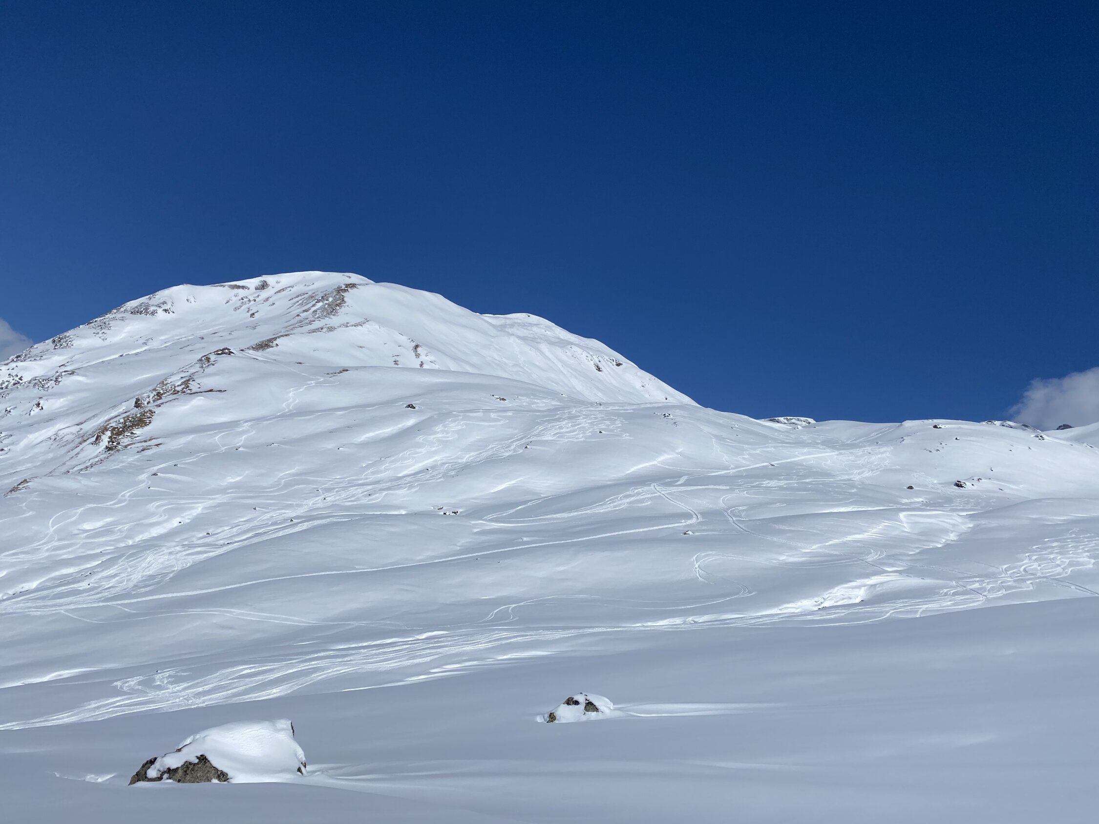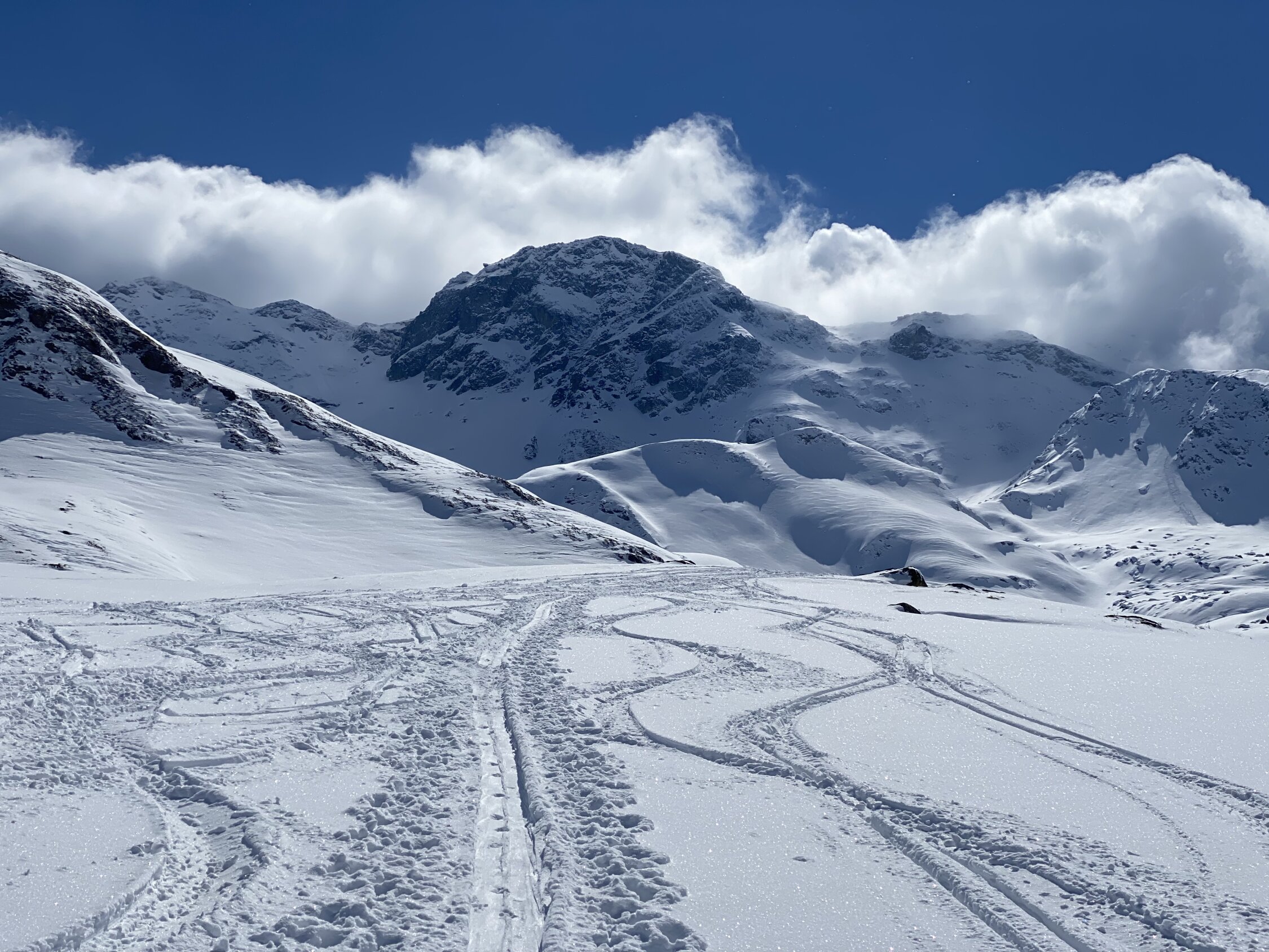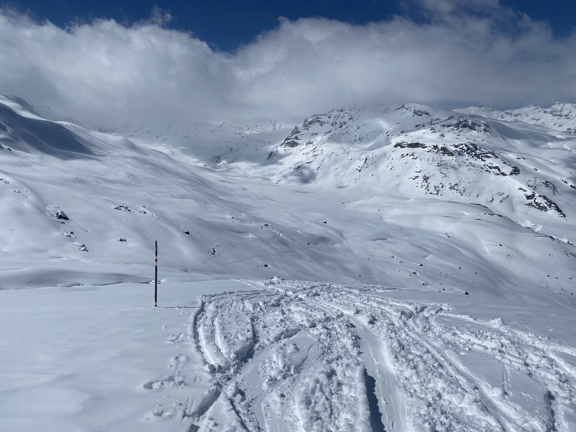 Traumtag am Julier. 20cm Neuschnee und noch reichlich Raum für die eigene Line.