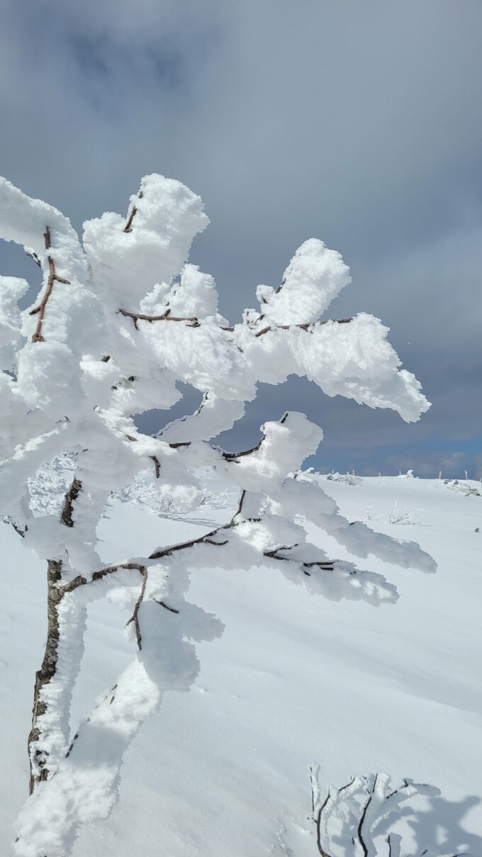 10 - 15 cm Pulverauflage. Am Gipfelhang ist aber fast nichts mehr drunter. Sonst schön zum abfahren. Skigebiet hat seit 3.4. die Saison beendet, auf Pisten gibt es noch eine Unterlage. Hochwinterlich verschneiter Wald. Traumtag und herrliches Wetter.