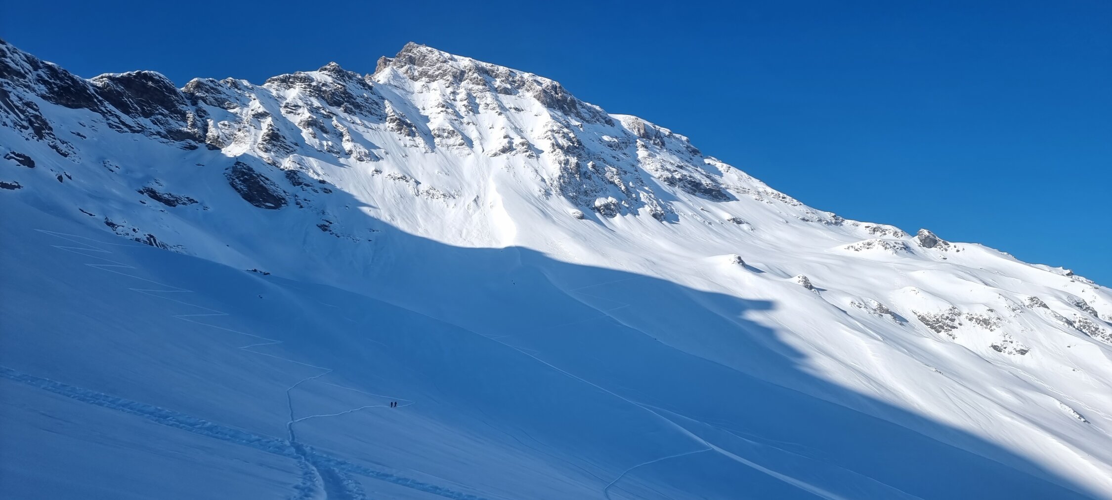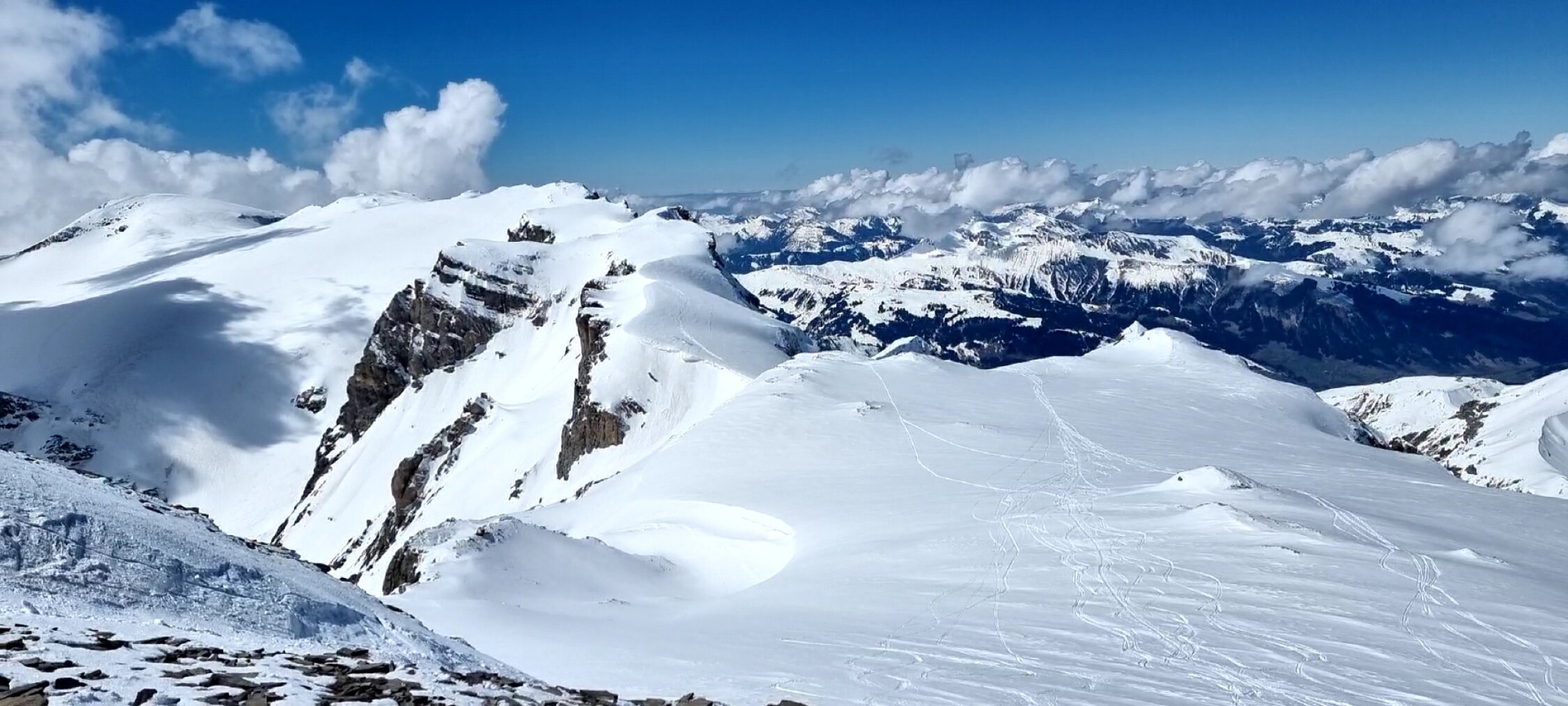 Mit der Bahn um 08.15 Uhr auf die Engstligenalp. Dann dank Schlepp- und Dossenlift locker hoch bis auf 2362 m. Von dort in teilweise irreführenden Spuren (bin links zu weit hoch und musste dann wieder runterrutschen) auf das Flachstück vor dem steilen Aufstieg zum Frühstücksplatz. Die Querung dorthin ist in gutem Zustand. Weiter über die harmlose Steilstufe und das bekannte "faux-plat" zum Gipfel. Knapp vier Stunden inkl. Pausen. Abfahrt oben ganz passabel, weiter unten dann grösstenteils leider vermiest durch üblen Bruchharsch.