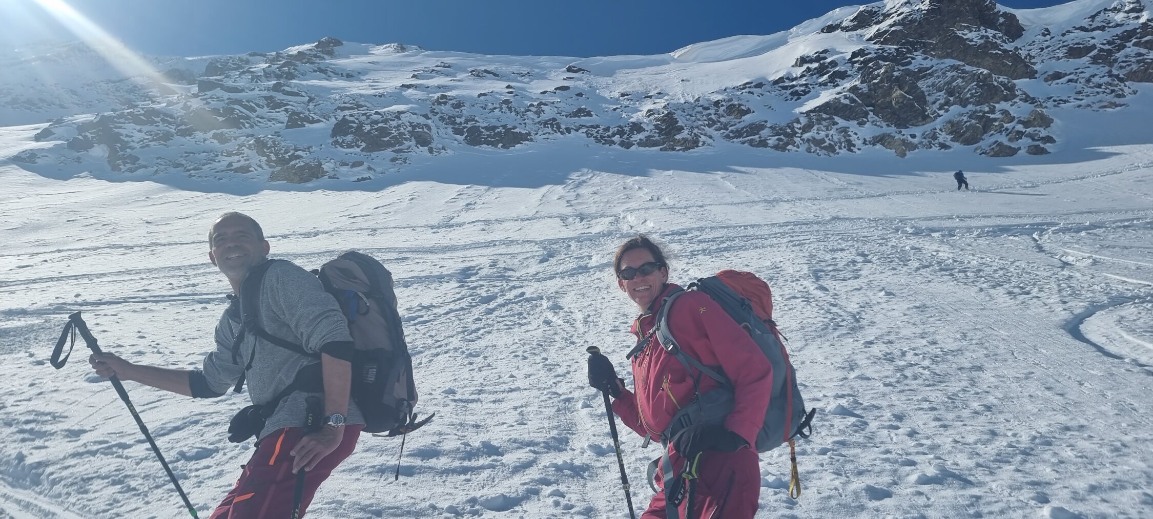 Habe beim Aufstieg Bekanntschaft geschlossen mit Monika und Andi aus Zürich. Danke den beiden für Aufstieg, Gipfelrast, Abfahrt, Fotos und den sehr netten Gedankenaustausch.