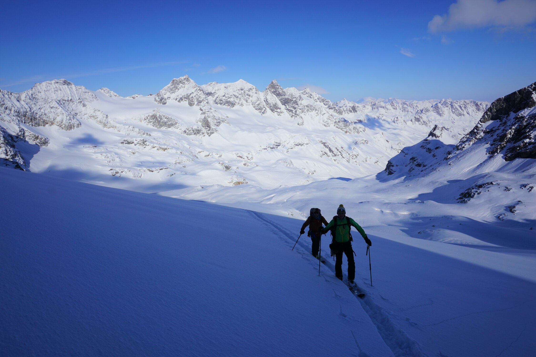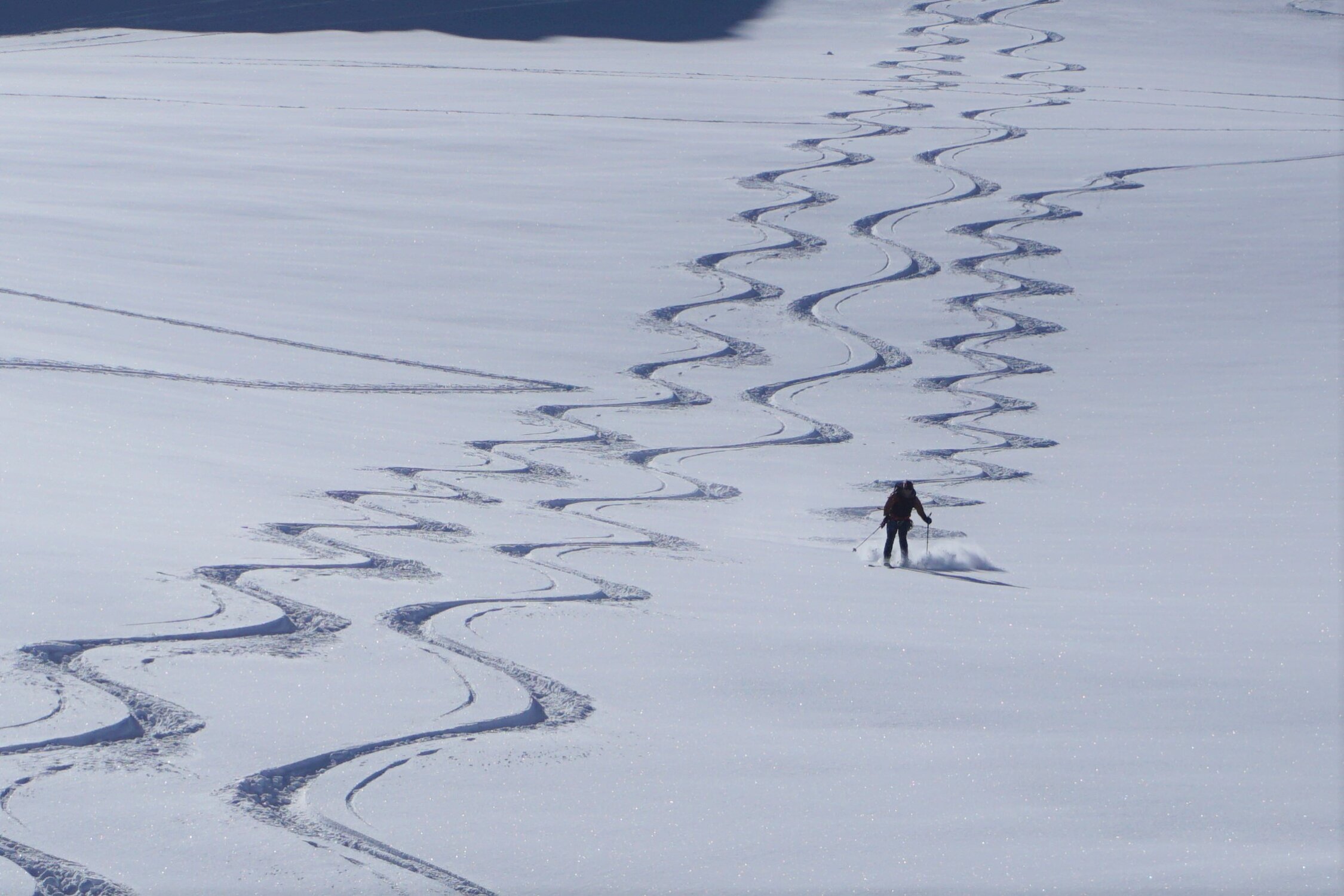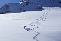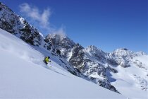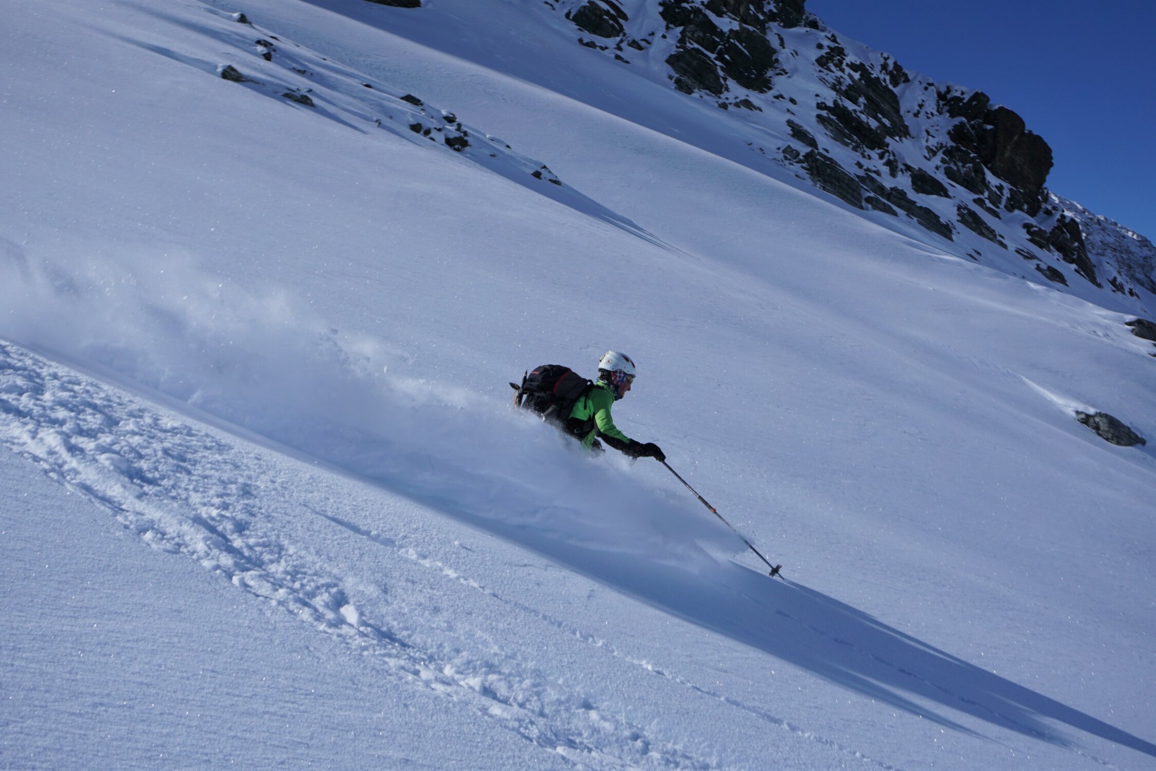 Traumhafte, tiefwinterliche Verhältnisse mit lockerem Pulver auf der ganzen Tour. Dank schnellem Start von der Wiesbadener Hütte waren wir alleine am Gipfel und haben die ersten Tourengeher erst am Skidepot nach der Gipfelbesteigung angetroffen. Während nach und nach immer mehr Tourengeher Richtung Gipfel geströmt sind, konnten wir die Hänge unter dem Skidepot viermal fast unverspurt genießen. Extrem trockener Pulver, kein Windeinfluss - solche Schneeverhältnisse auf Hochtour sind eine echte Seltenheit.