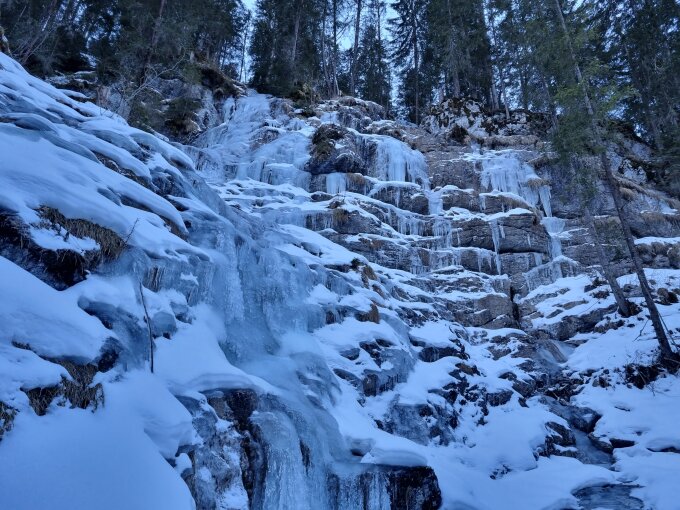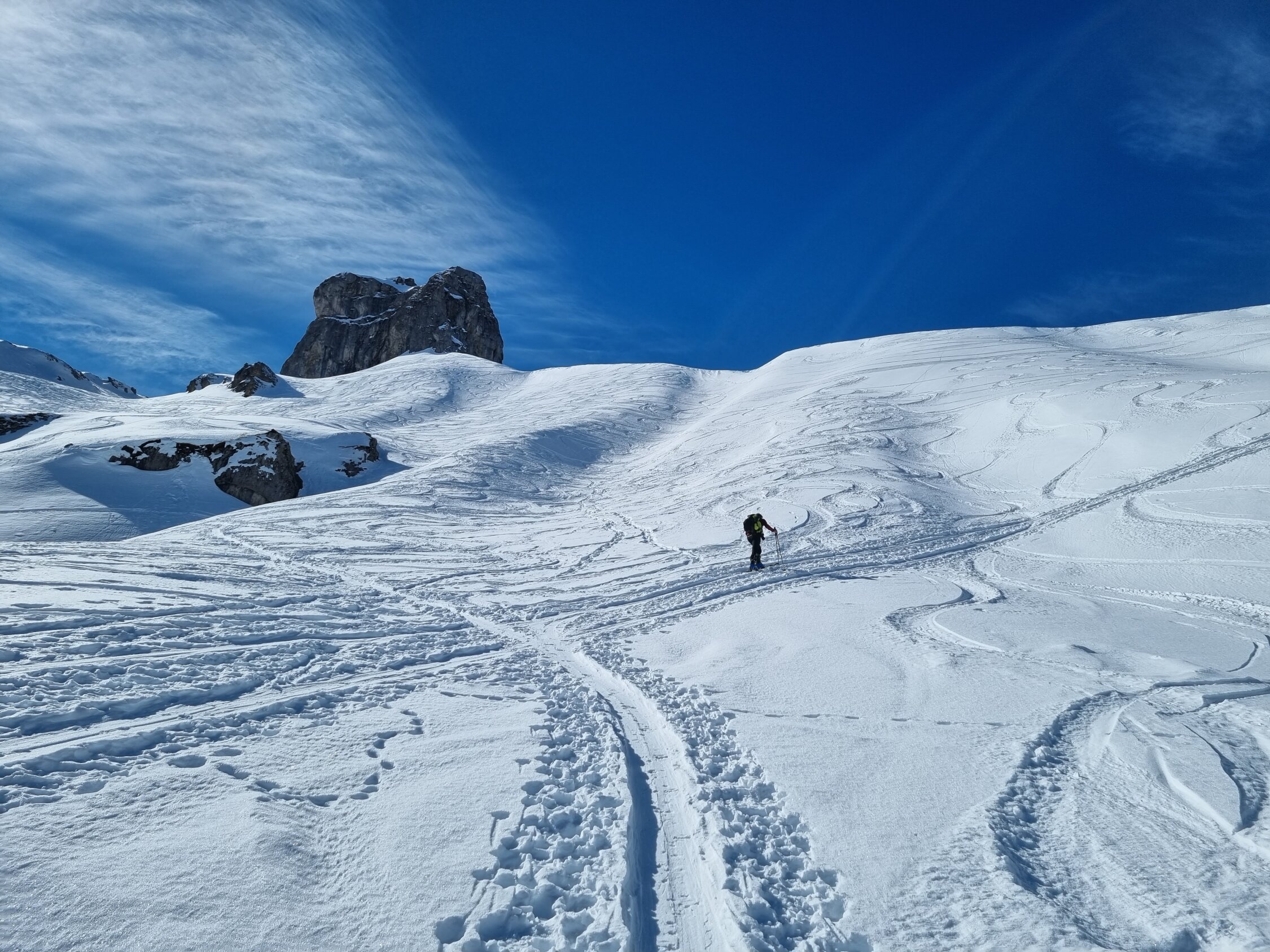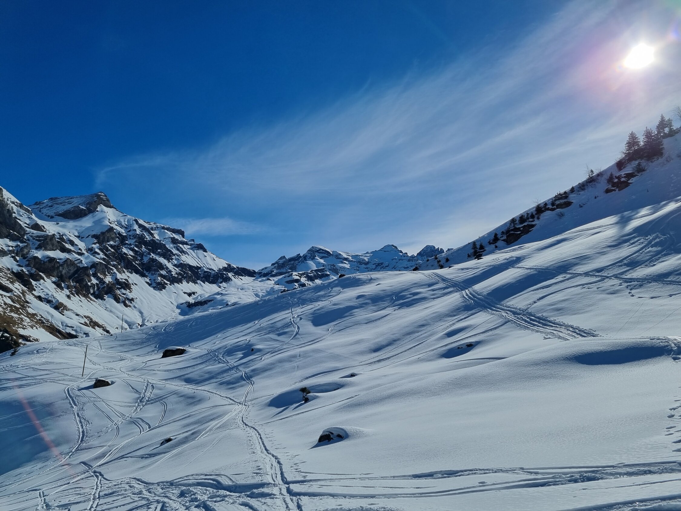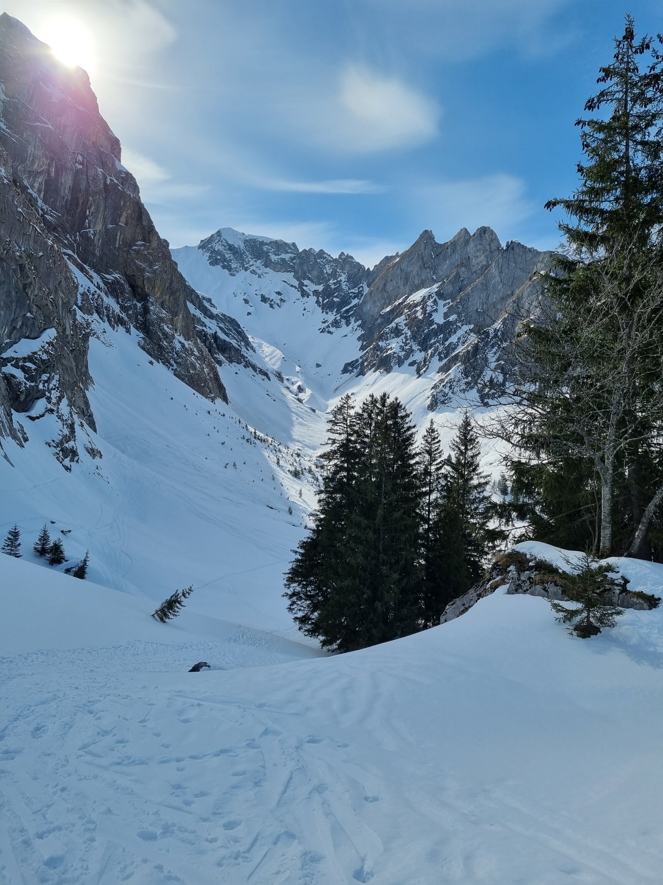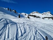 Aufstieg auf der Fahrstrasse durch die Griesschlucht gut machbar (zwei Mal mussten die Skis ausgezogen werden). Oben Pulverschnee.