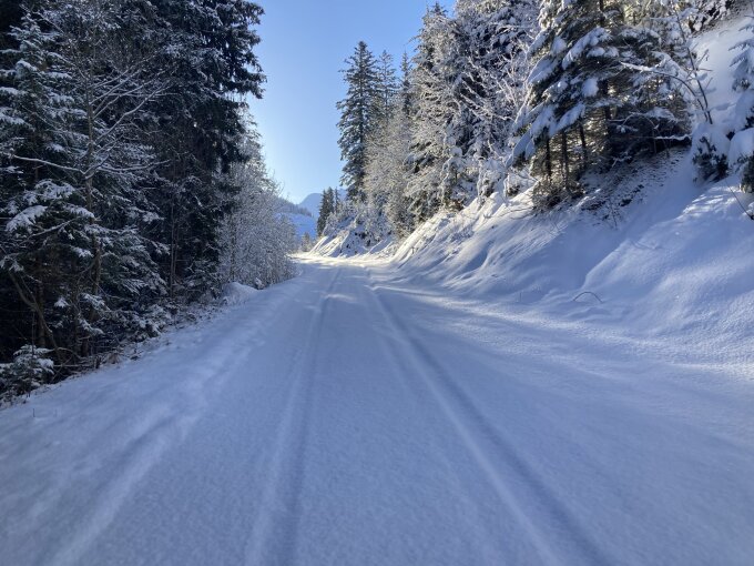 Mit der Erwärmung schmilzt wohl auch der Schnee auf den sonnenexponierten Strassen. Morgen (Montag) ist wohl die Strasse zur "Undere Heitere" aper oder auch zu höheren Lagen. Das wäre ja für die Anfahrt positiv.