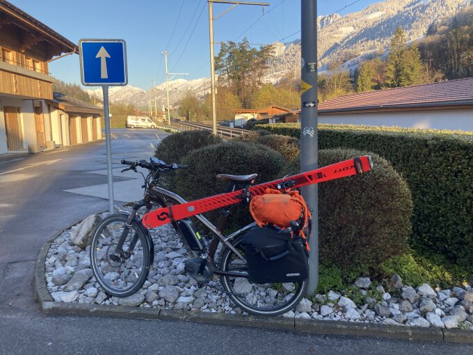Anfahrt heute mit eBike auf zirka 1'360m. Von dort aus um 09:20 h mit Skis zum Gipfel (11:30 h). Anfahrtsroute via Wasserbrügg - Fuchsallmi - Pkt. 1'179m (im Höllersberg) anschl. bis Ausgang Wald (fast bis "Underi Heitere"). Auf dem Waldweg lag heute Morgen 20cm Pulverschnee! Darum ab und zu "gespult" mit Velo. Auf Rückfahrt durch den Wald waren auf 20cm Nassschnee gutes Gleichgewicht oder sehr fette Reifen nötig... (oder beides :-)