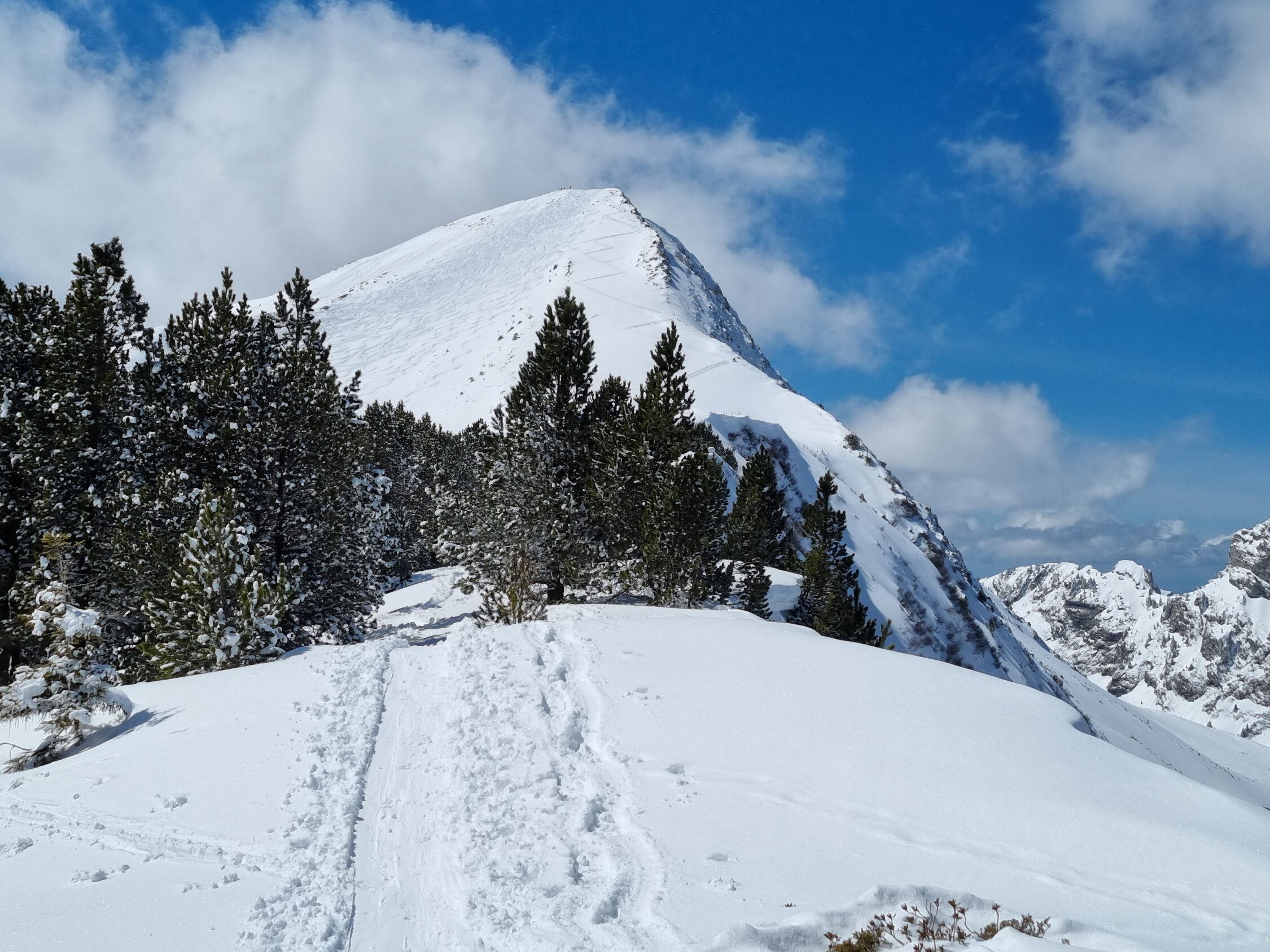 Weil ich am Morgen noch ein längeres Lauftraining gemacht hatte, bin ich erst um 12:00 Uhr gestartet. Dann kamen schon die meisten Skitourer/Schneeschuhläufer zurück. Die Strasse von Langis auf die Passhöhe war noch total schneebedeckt. Als ich um 15:30 Uhr zurückkam war sie nicht nur weitgehend aper, sondern sogar auch trocken (wo nicht gerade Schmelzwasser über die Fahrbahn lief). Allgemein war der Schnee unten sehr nass, am Fürstein selber aber sogar noch pulverig. Vielerorts, auch beim Aufstieg zum Rickhubel, hat es keine Unterlage mehr, so dass der Schnee wohl bald schmelzen wird. Der Schnee im Übergang vom Rickhubel zum Fürstein war erstaunlicherweise nicht weggeblasen und mit Schnee bedeckt.