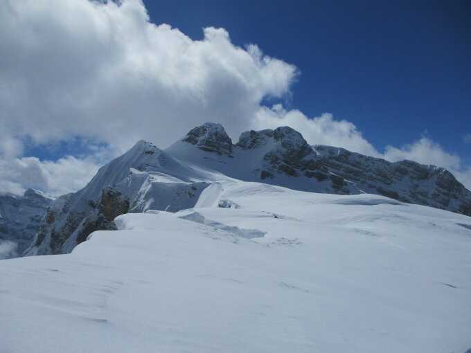 Unser "Vorgänger" befand sich bereits in der Abfahrt, als wir noch auf dem Weg zum Gipfel waren, weshalb wir uns nicht begegneten. Somit waren insgesamt nurwir 3 Personen heute auf dem Lachenstock, während sich auf dem benachbarten Redertengrat erwartungsgemäß viele Tourengeher tummelten.